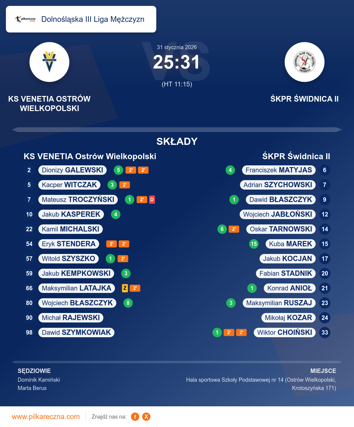 KS VENETIA Ostrów Wielkopolski 25–31 ŚKPR Świdnica II