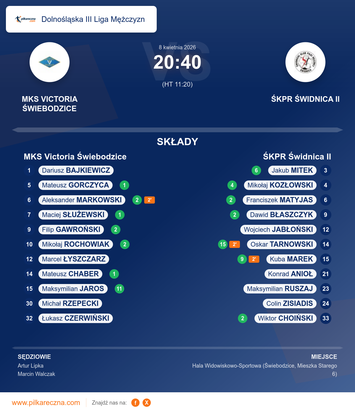 Sędziowali: Artur Lipka, Marcin Walczak