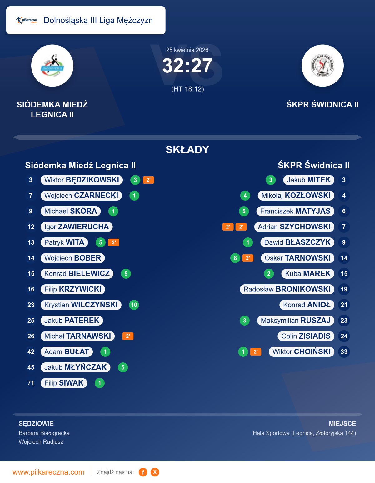 Siódemka Miedź Legnica II 32–27 ŚKPR Świdnica II