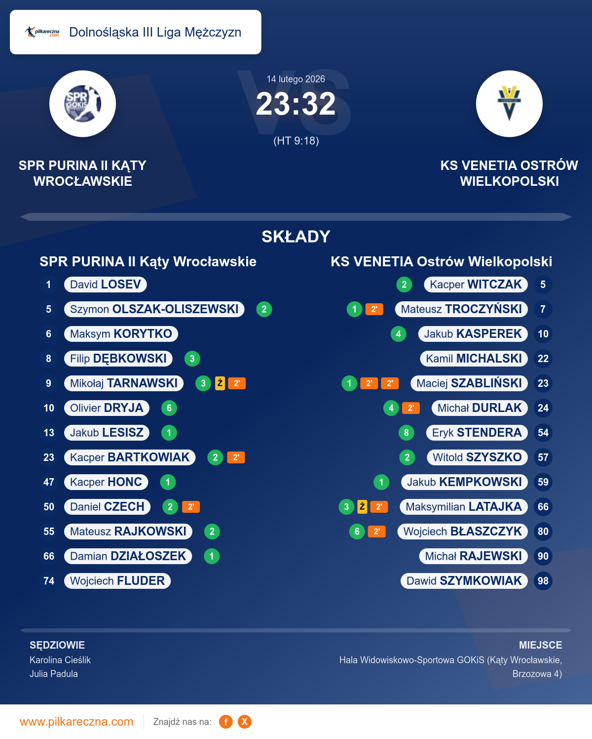 SPR PURINA II Kąty Wrocławskie 23–32 KS VENETIA Ostrów Wielkopolski