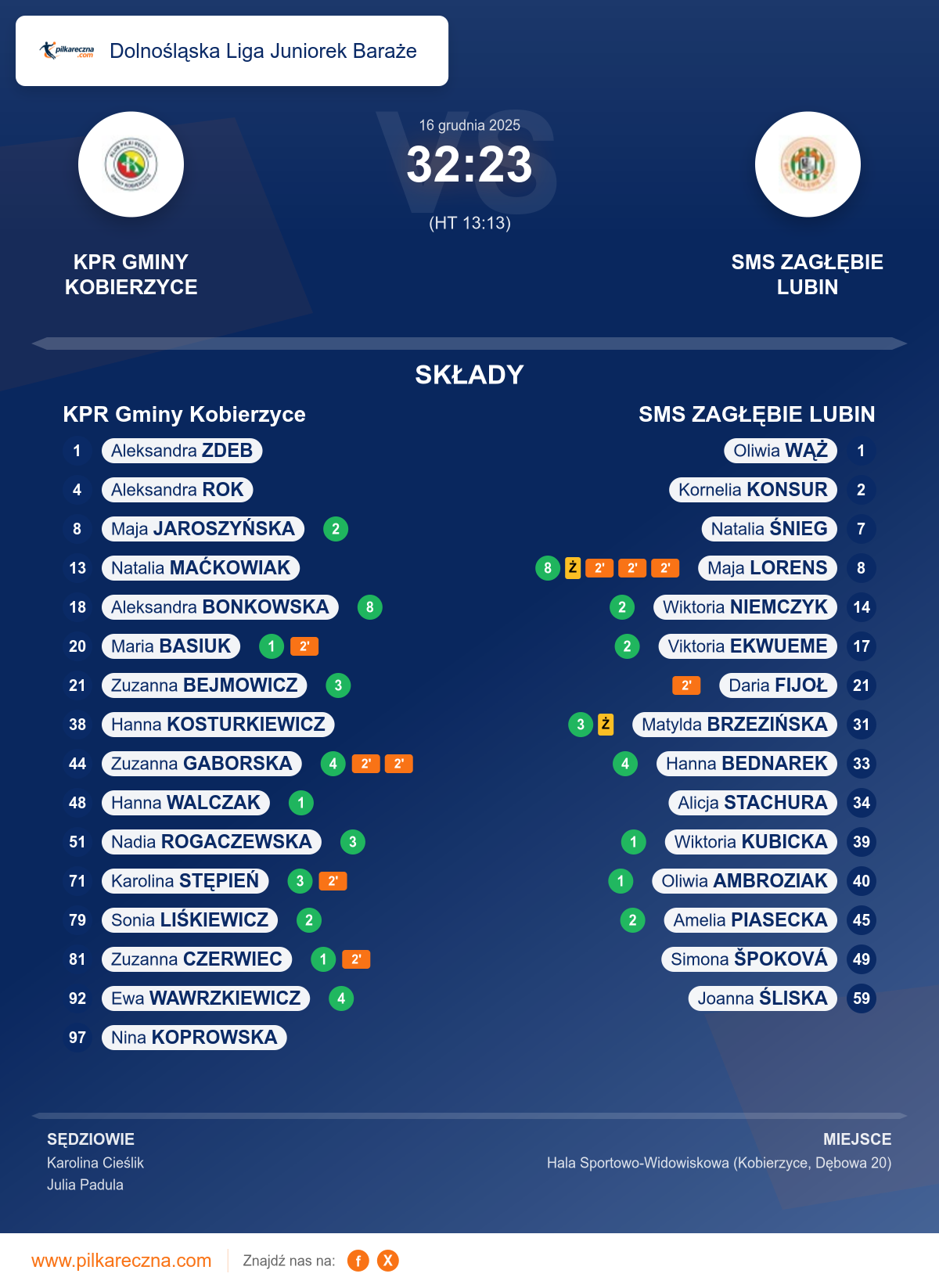 KPR Gminy Kobierzyce 32–23 SMS ZAGŁĘBIE LUBIN