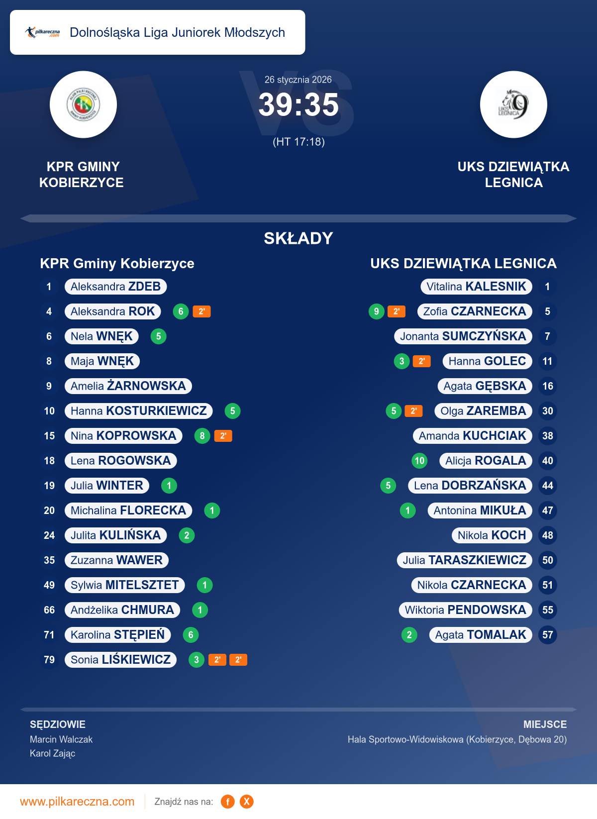 KPR Gminy Kobierzyce 39–35 UKS DZIEWIĄTKA LEGNICA