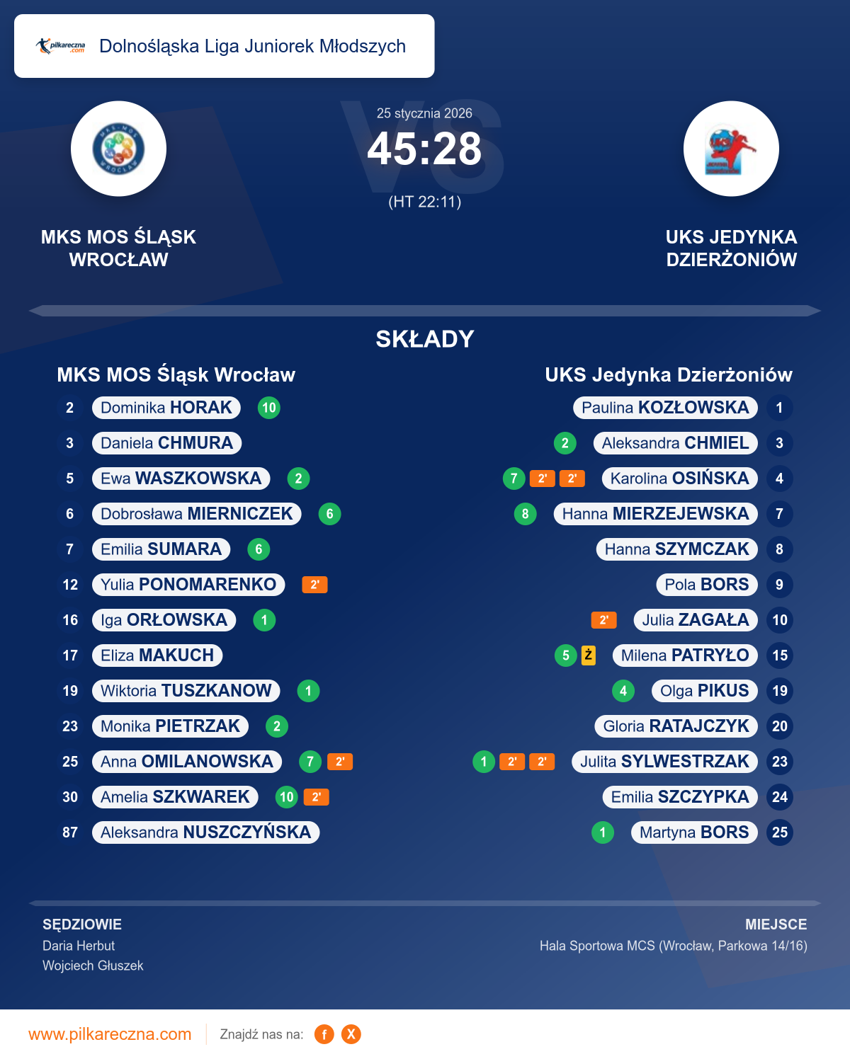 MKS MOS Śląsk Wrocław 45–28 UKS Jedynka Dzierżoniów