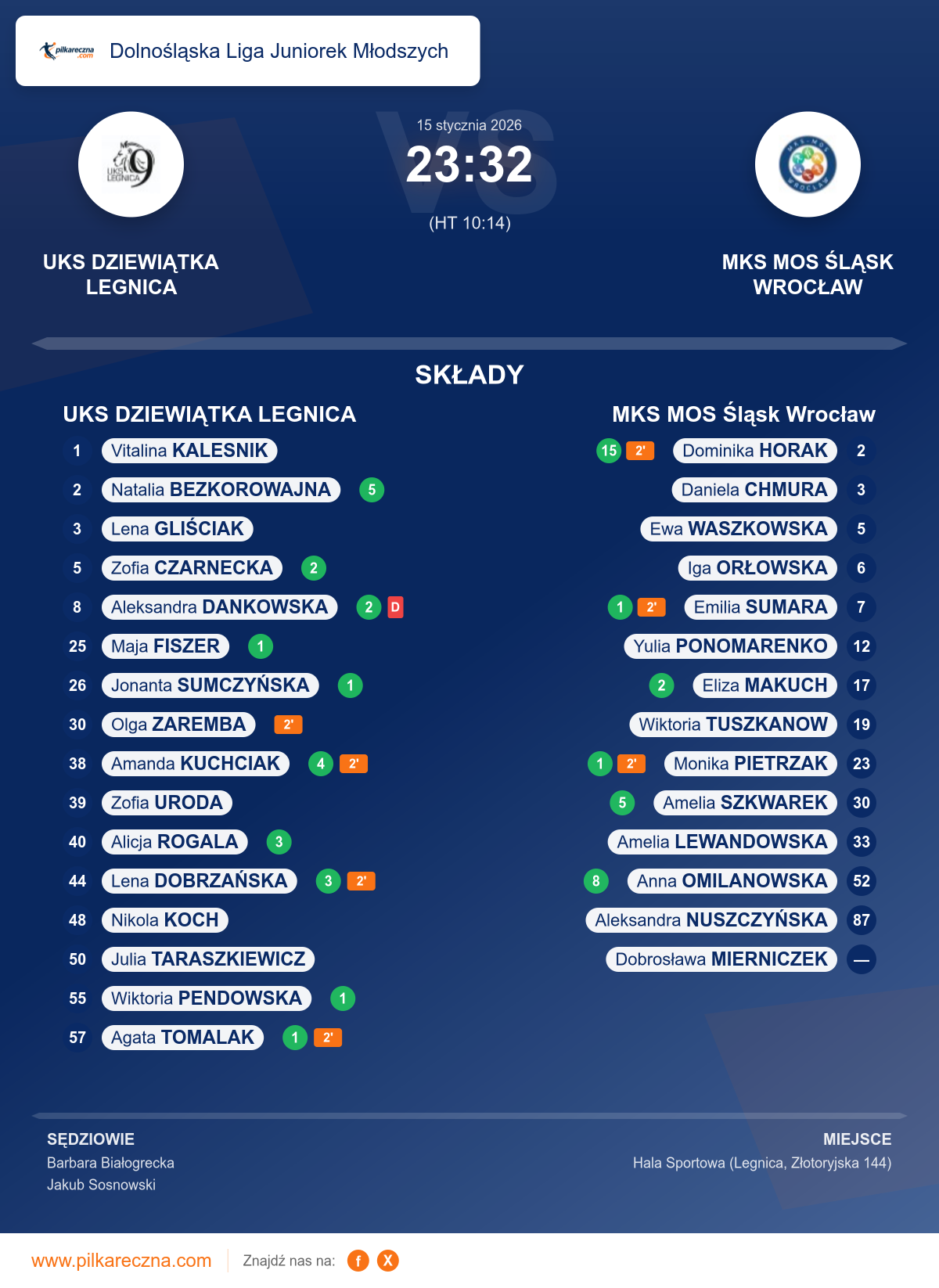 UKS DZIEWIĄTKA LEGNICA 23–32 MKS MOS Śląsk Wrocław