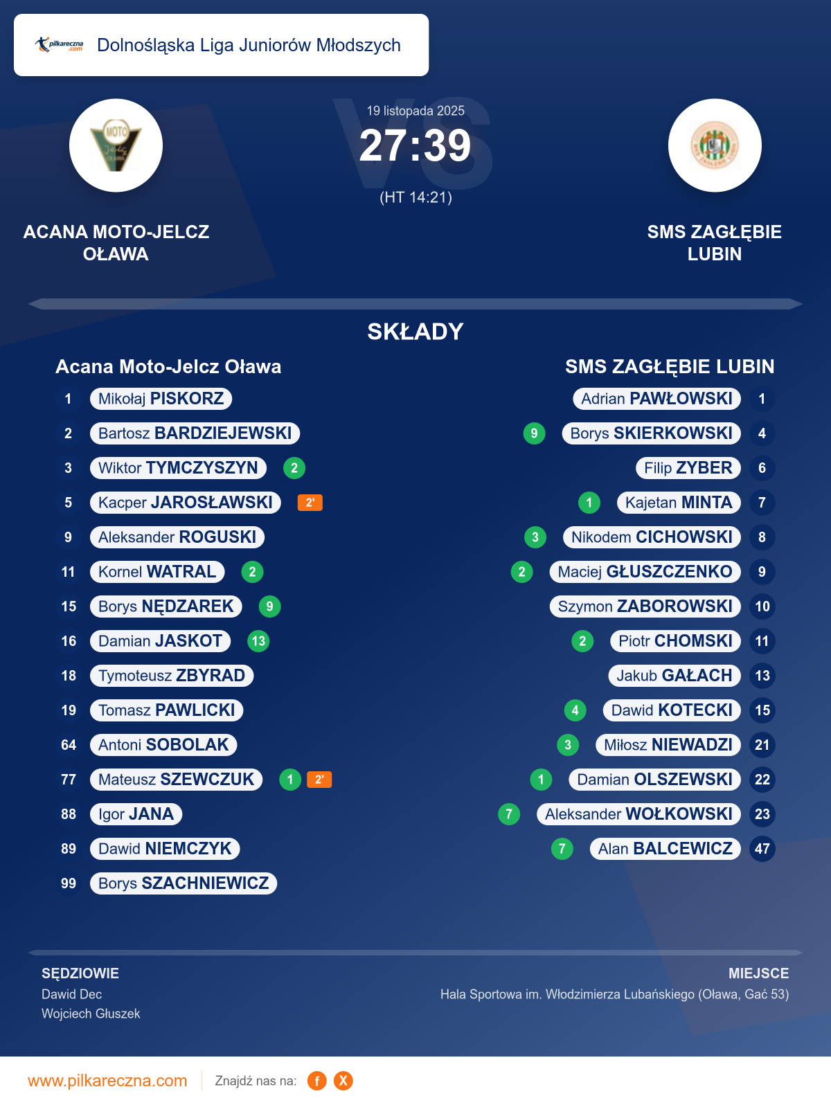 Sędziowali: Dawid Dec, Wojciech Głuszek