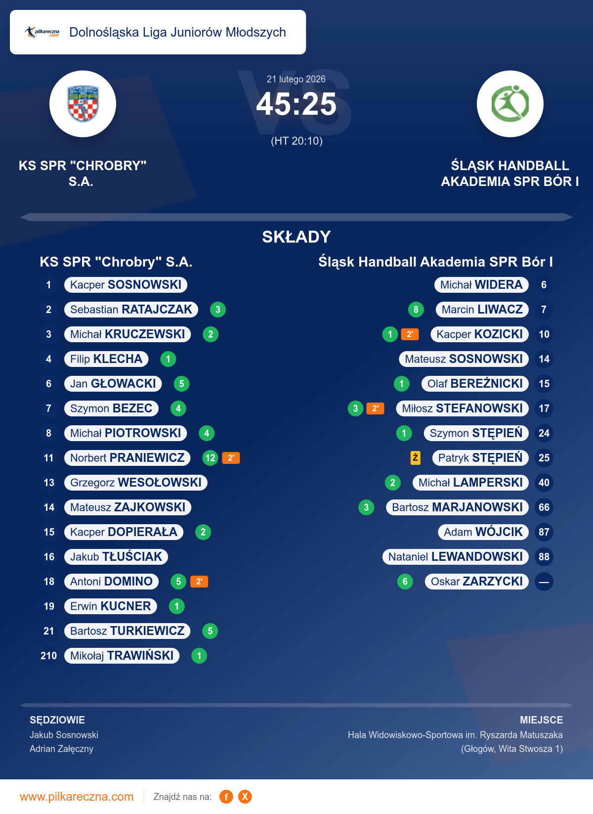KS SPR "Chrobry" S.A. 45–25 Śląsk Handball Akademia SPR Bór I