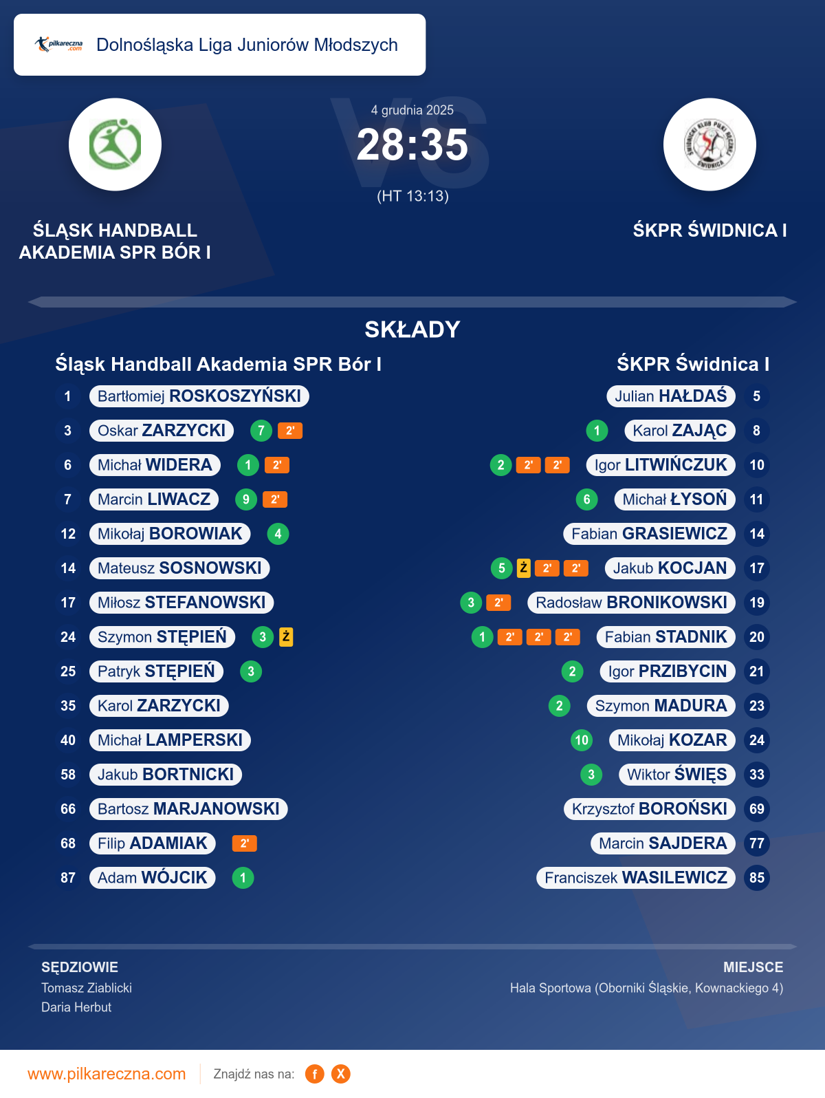 Śląsk Handball Akademia SPR Bór I 28–35 ŚKPR Świdnica I