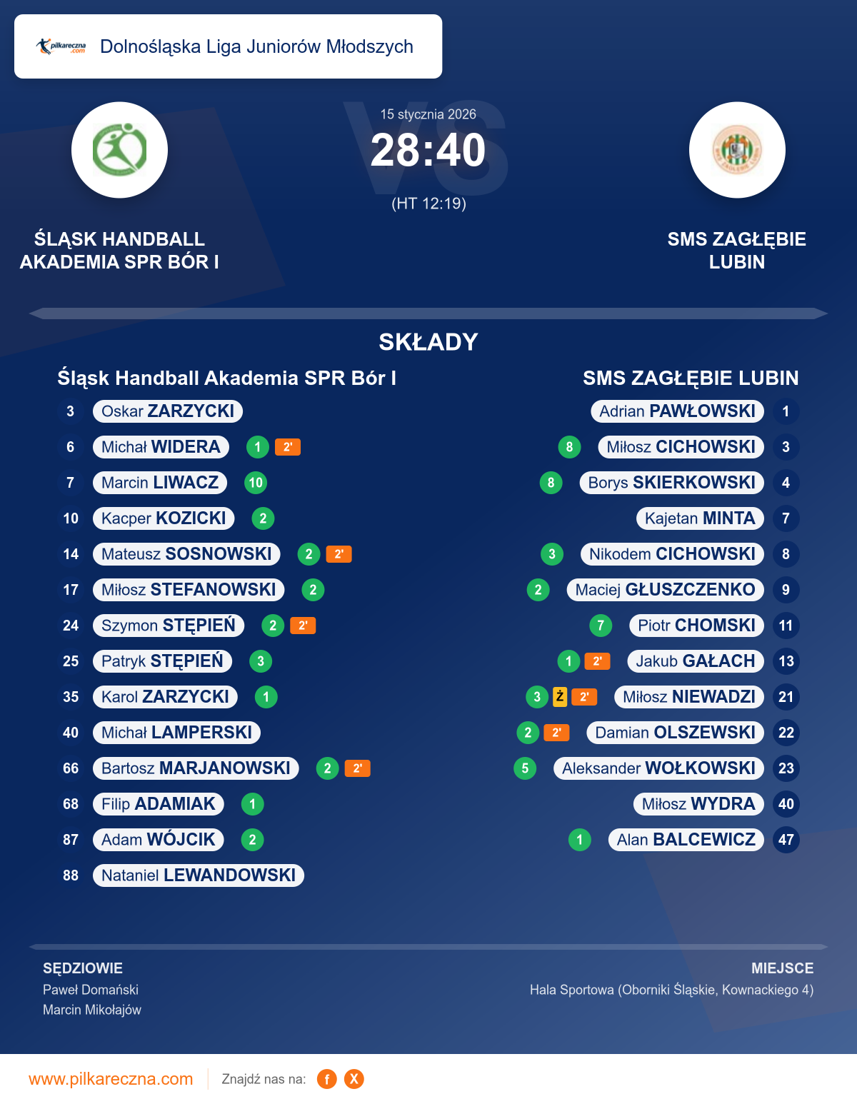 Śląsk Handball Akademia SPR Bór I 28–40 SMS ZAGŁĘBIE LUBIN