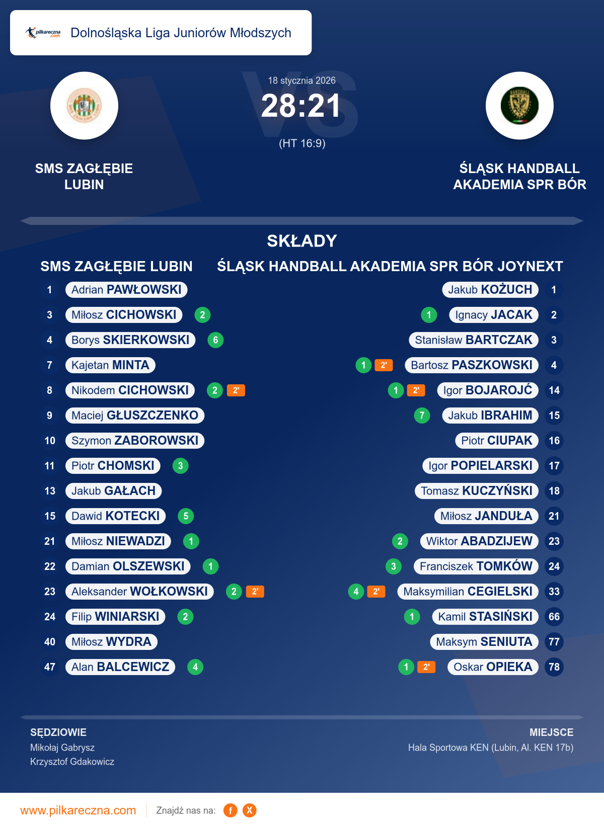SMS ZAGŁĘBIE LUBIN 28–21 ŚLĄSK HANDBALL AKADEMIA SPR BÓR JOYNEXT