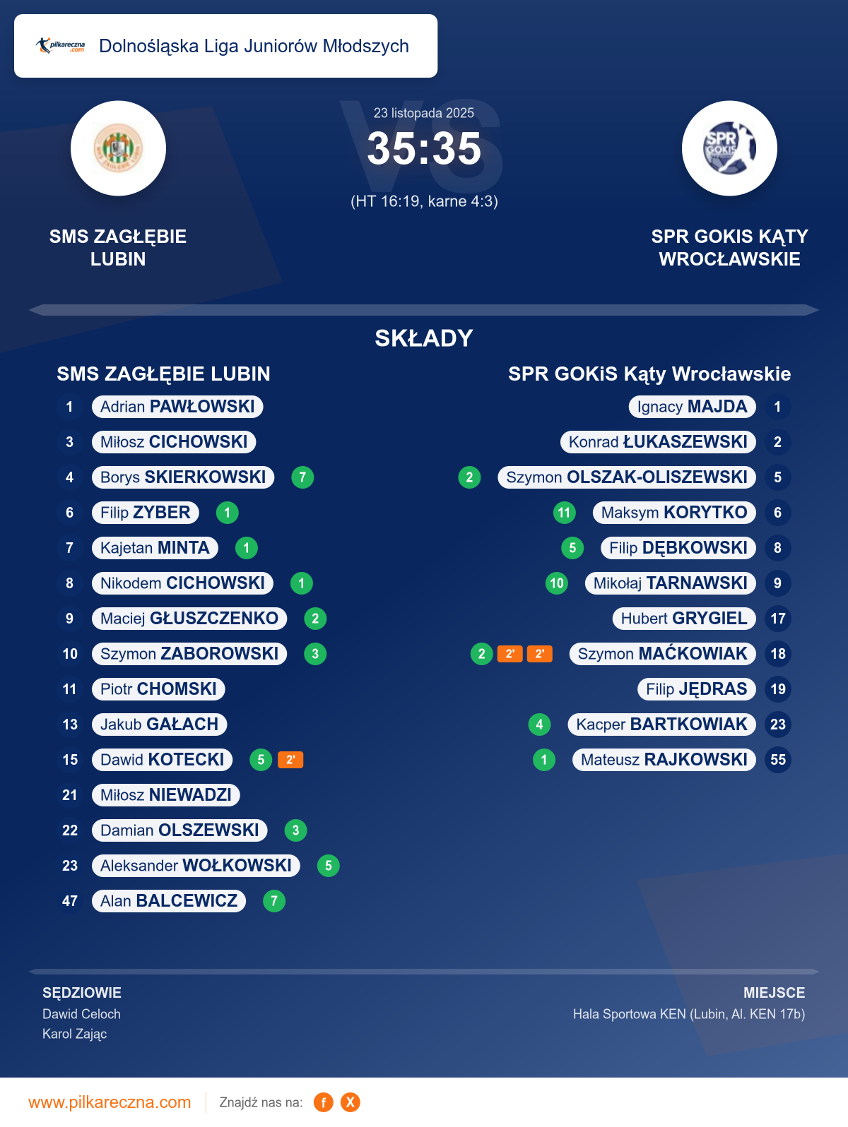 Wynik: 35–35 (HT 16–19), po karnych 4–3