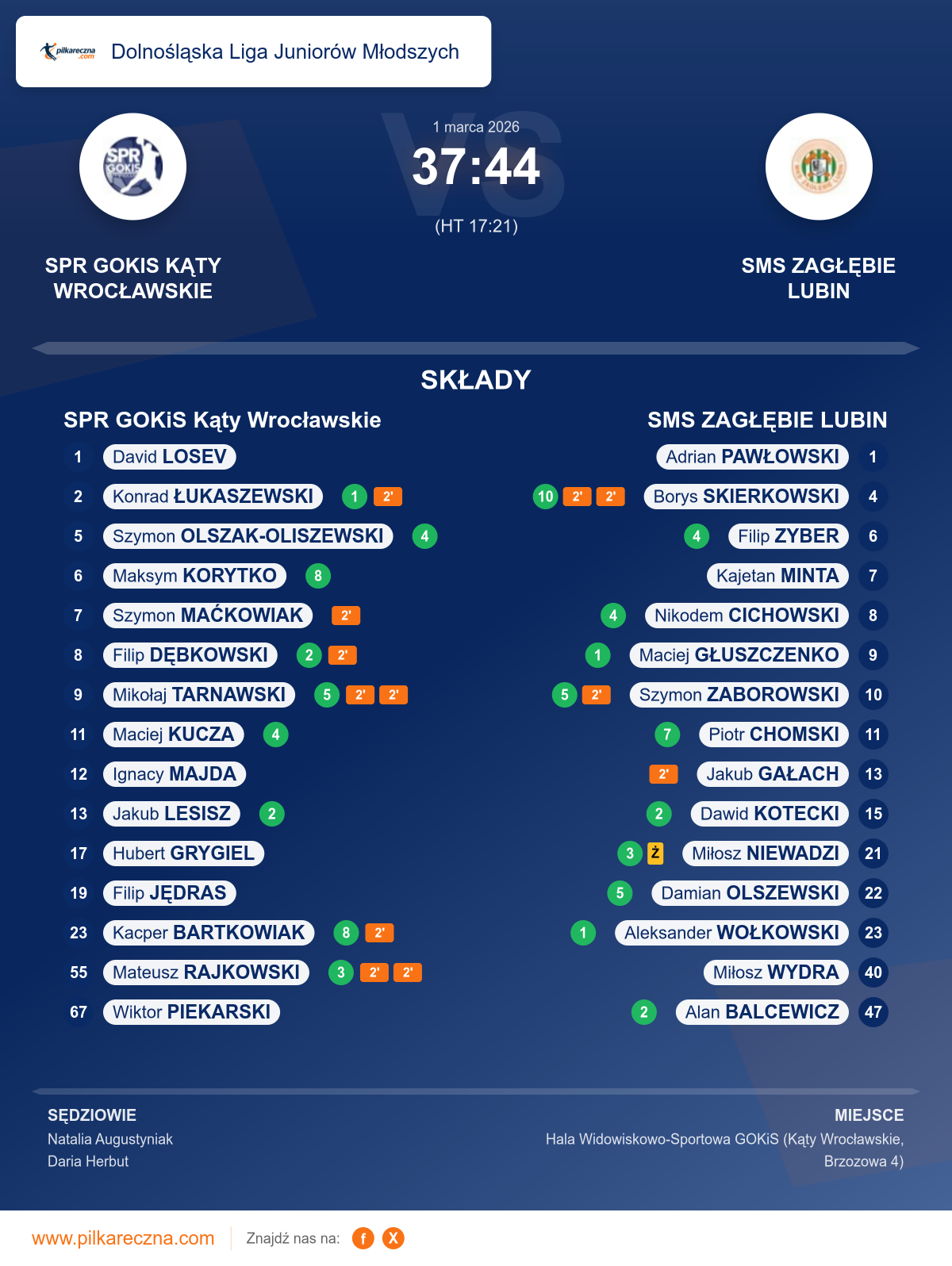 SPR GOKiS Kąty Wrocławskie 37–44 SMS ZAGŁĘBIE LUBIN