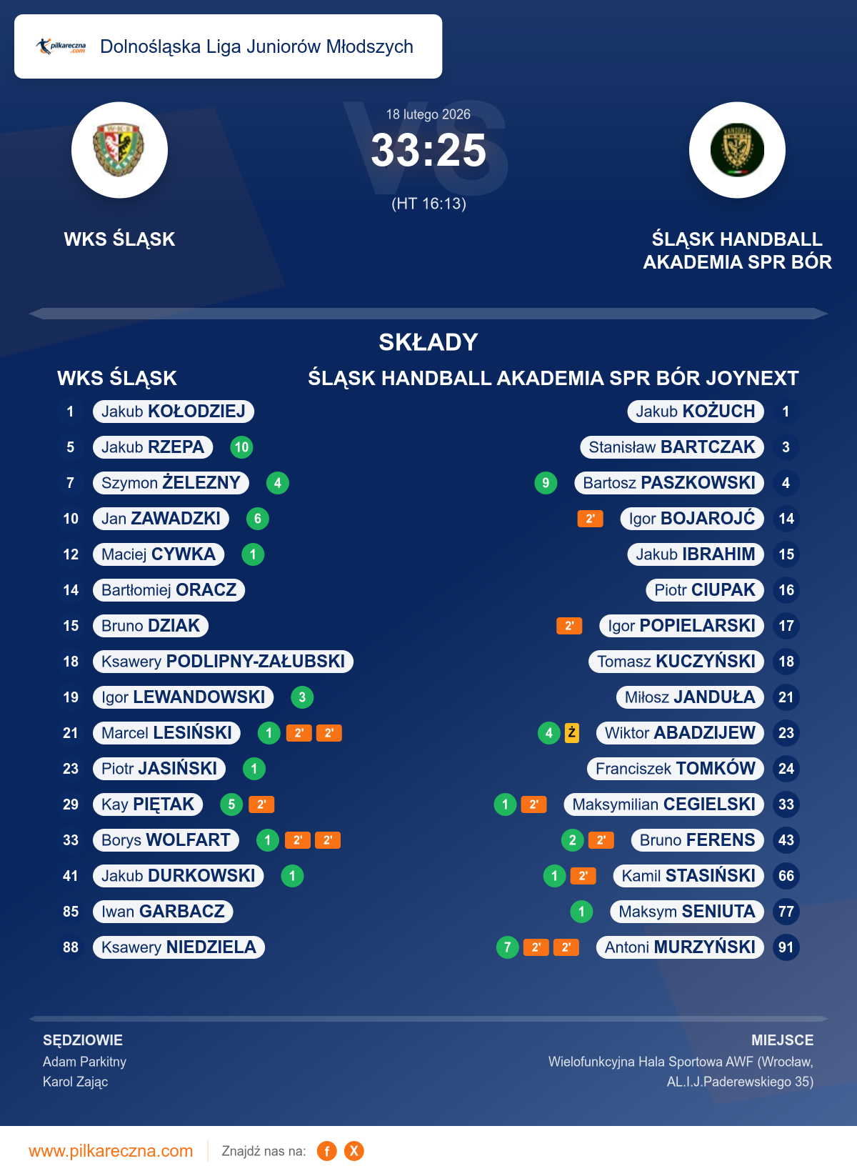 WKS ŚLĄSK 33–25 ŚLĄSK HANDBALL AKADEMIA SPR BÓR JOYNEXT