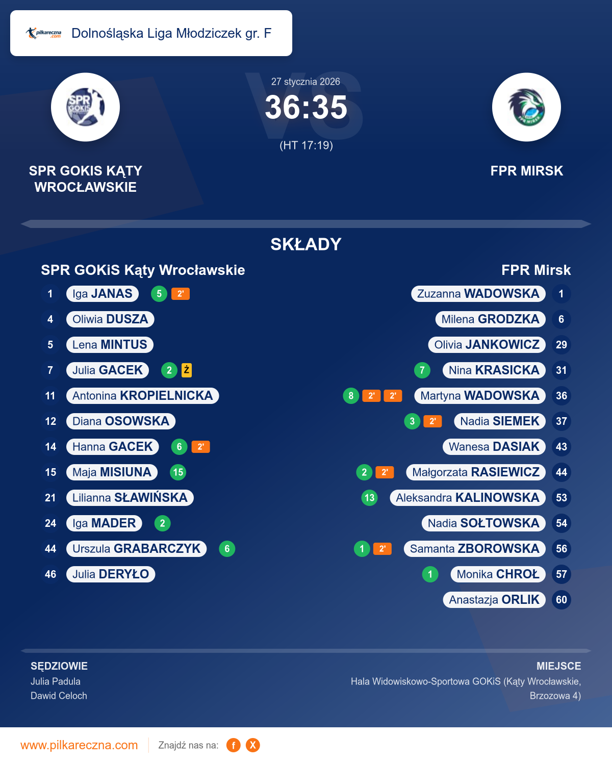 SPR GOKiS Kąty Wrocławskie 36–35 FPR Mirsk