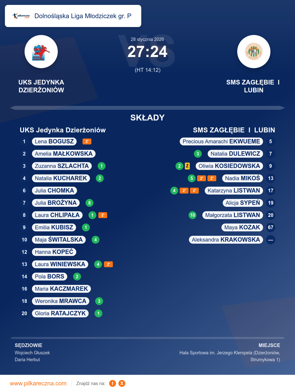 UKS Jedynka Dzierżoniów 27–24 SMS ZAGŁĘBIE I LUBIN
