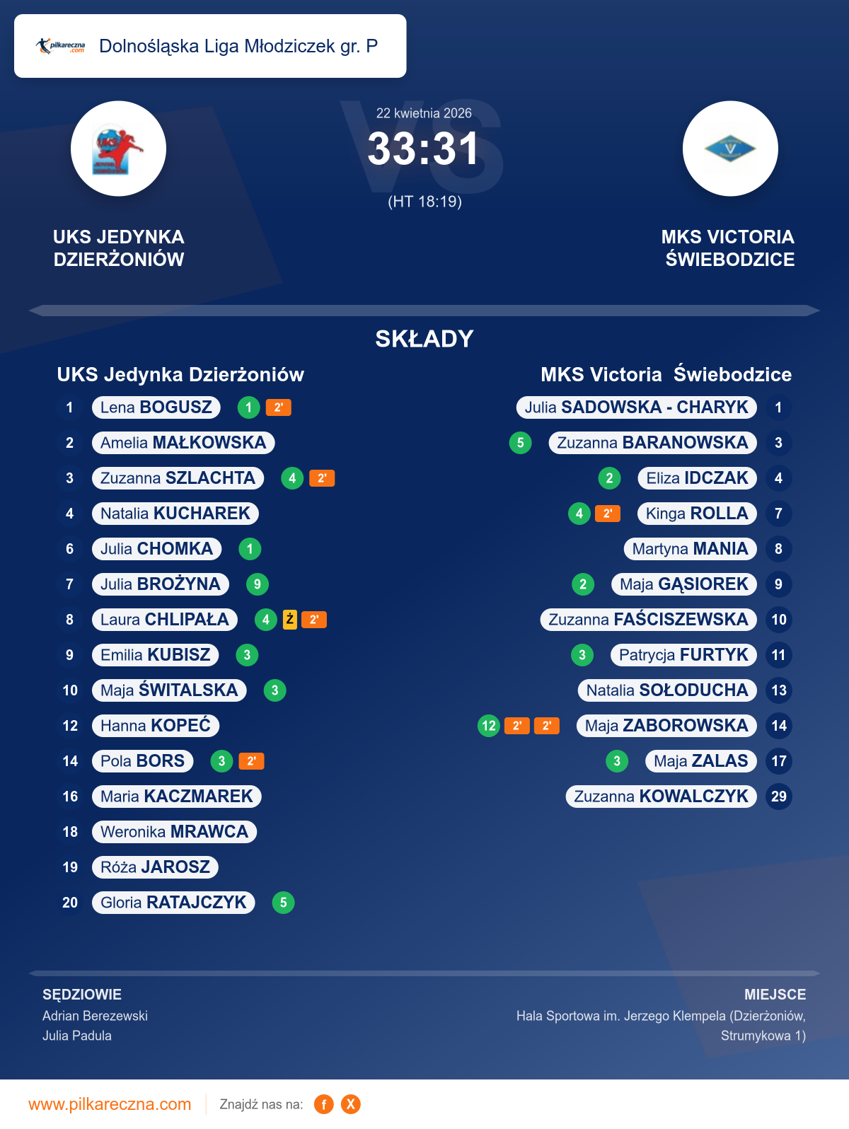 UKS Jedynka Dzierżoniów 33–31 MKS Victoria Świebodzice