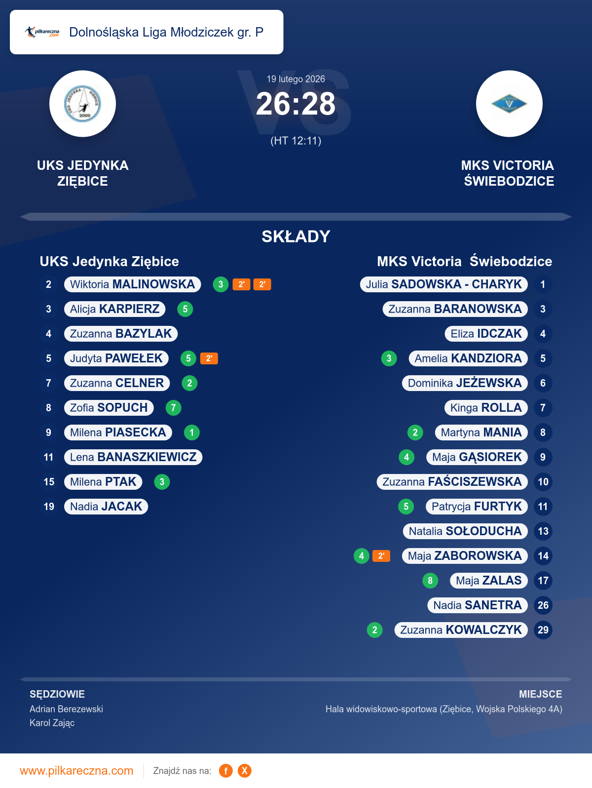 UKS Jedynka Ziębice 26–28 MKS Victoria Świebodzice