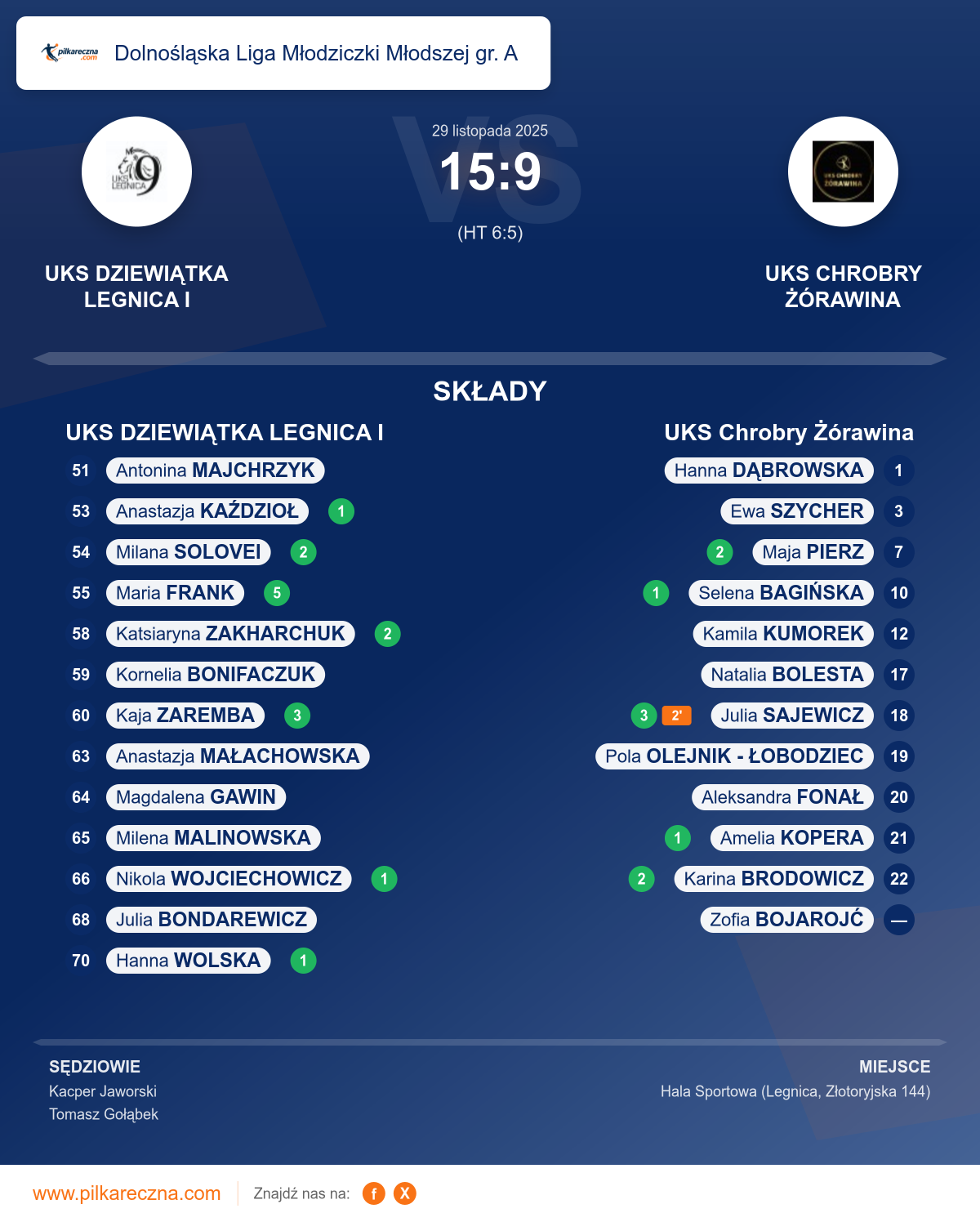 UKS DZIEWIĄTKA LEGNICA I 15–9 UKS Chrobry Żórawina