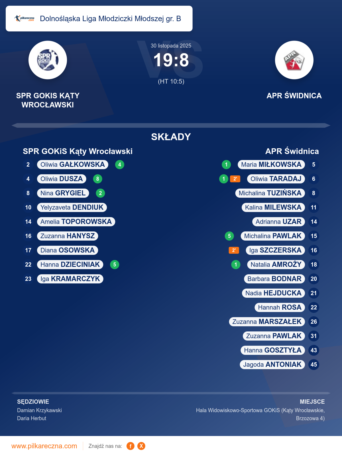 Zawodnicy: Oliwia Dusza (8), Hanna Dzieciniak (5), Oliwia Gałkowska (4), Nina Grygiel (2), Amelia Toporowska, Diana Osowska, Iga Kramarczyk, Yelyzaveta Dendiuk, Zuzanna Hanysz