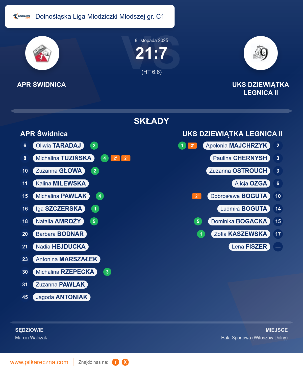 APR Świdnica 21–7 UKS DZIEWIĄTKA LEGNICA II