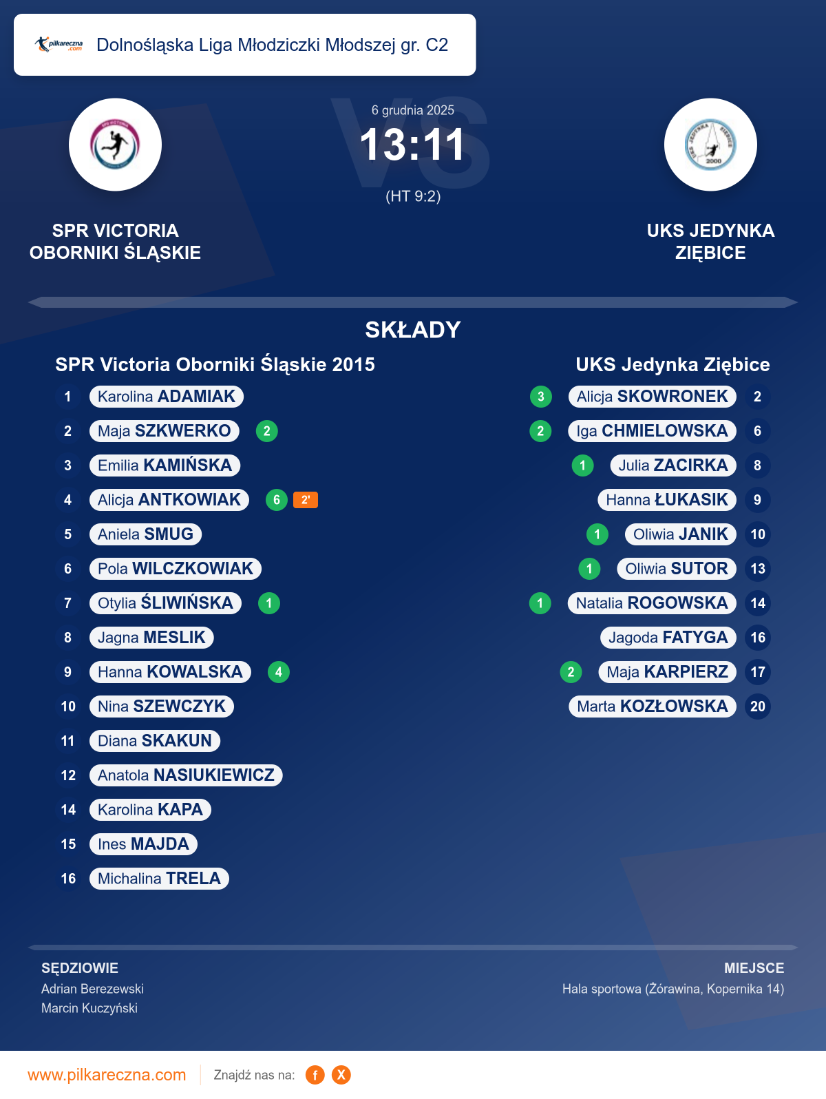 SPR Victoria Oborniki Śląskie 2015 13–11 UKS Jedynka Ziębice