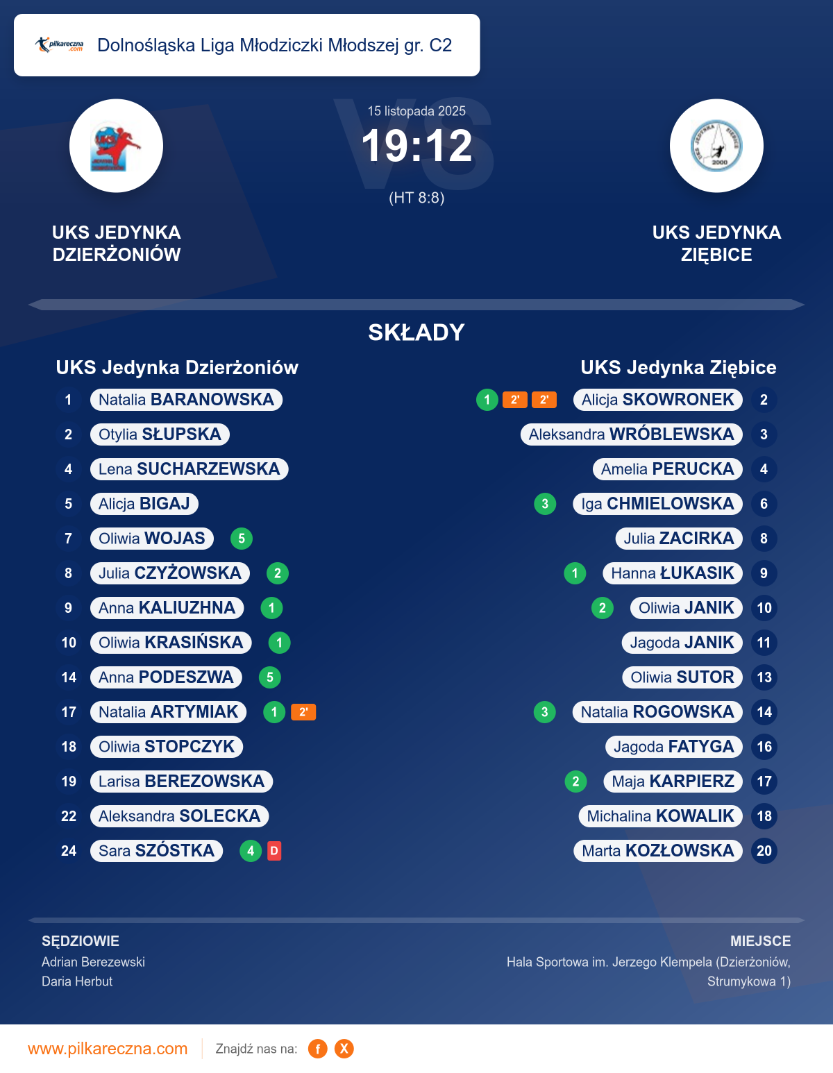 UKS Jedynka Dzierżoniów 19–12 UKS Jedynka Ziębice