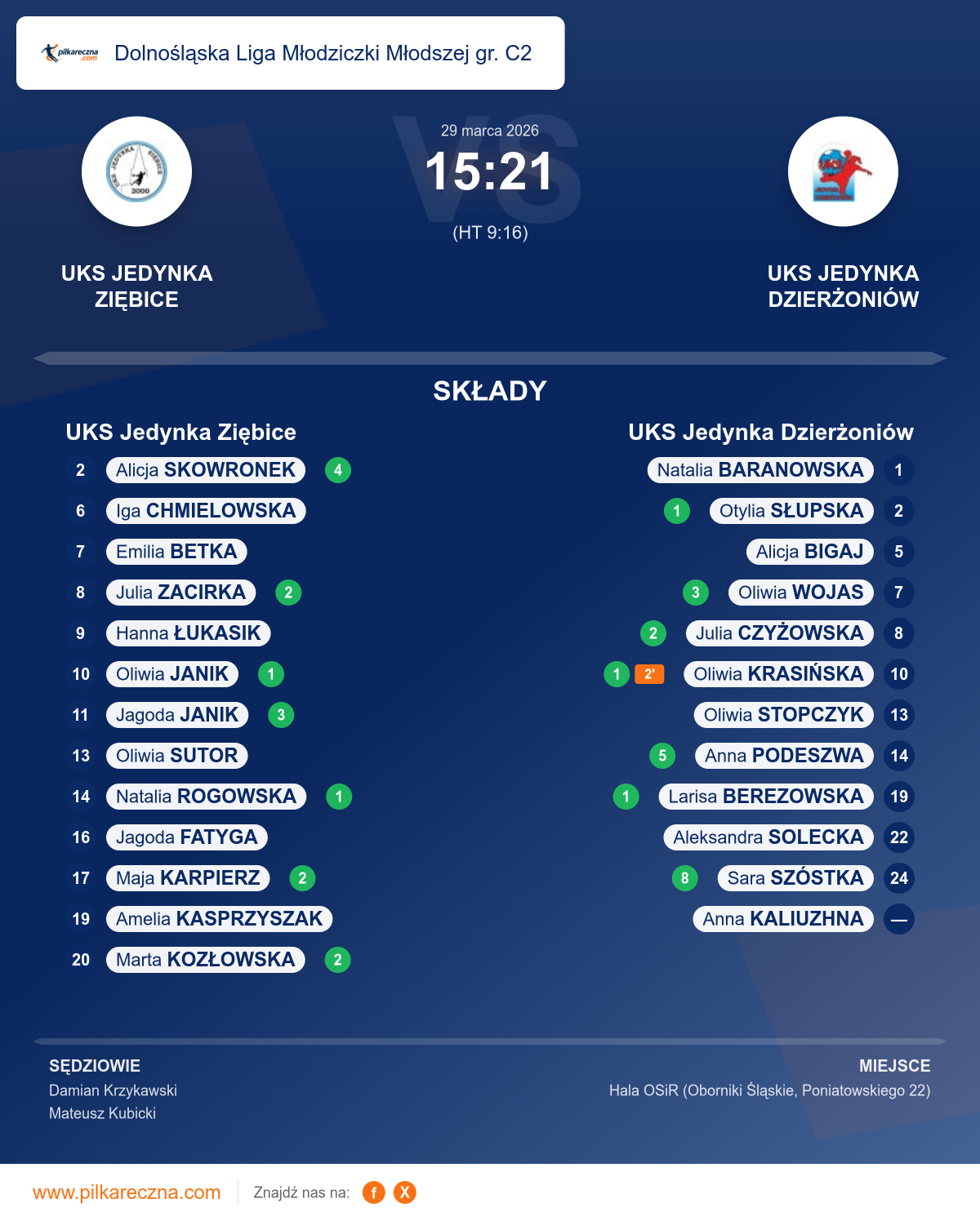 UKS Jedynka Ziębice — UKS Jedynka Dzierżoniów