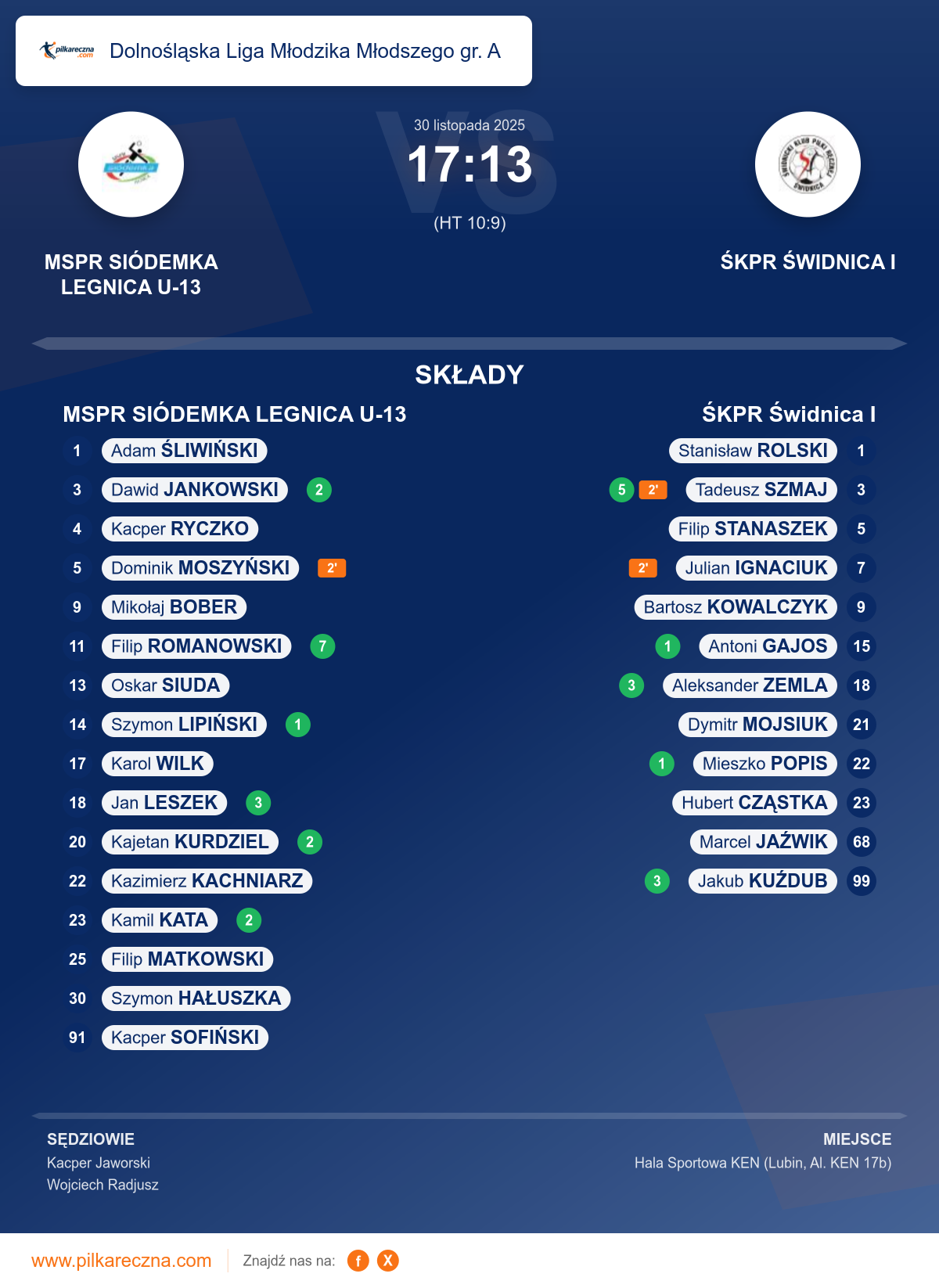 Bramkarze: Kacper Sofiński, Adam Śliwiński