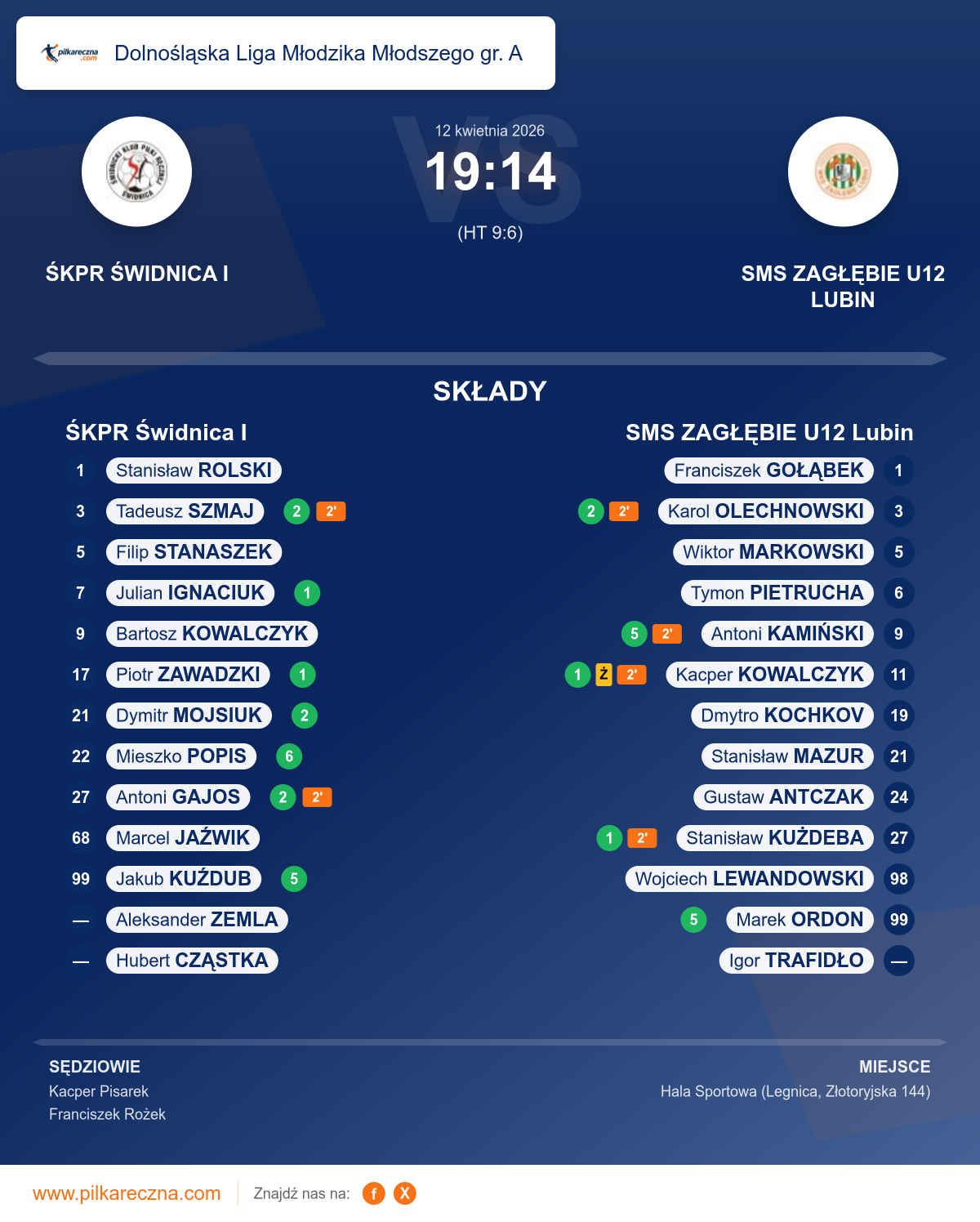 ŚKPR Świdnica I 19–14 SMS ZAGŁĘBIE U12 Lubin