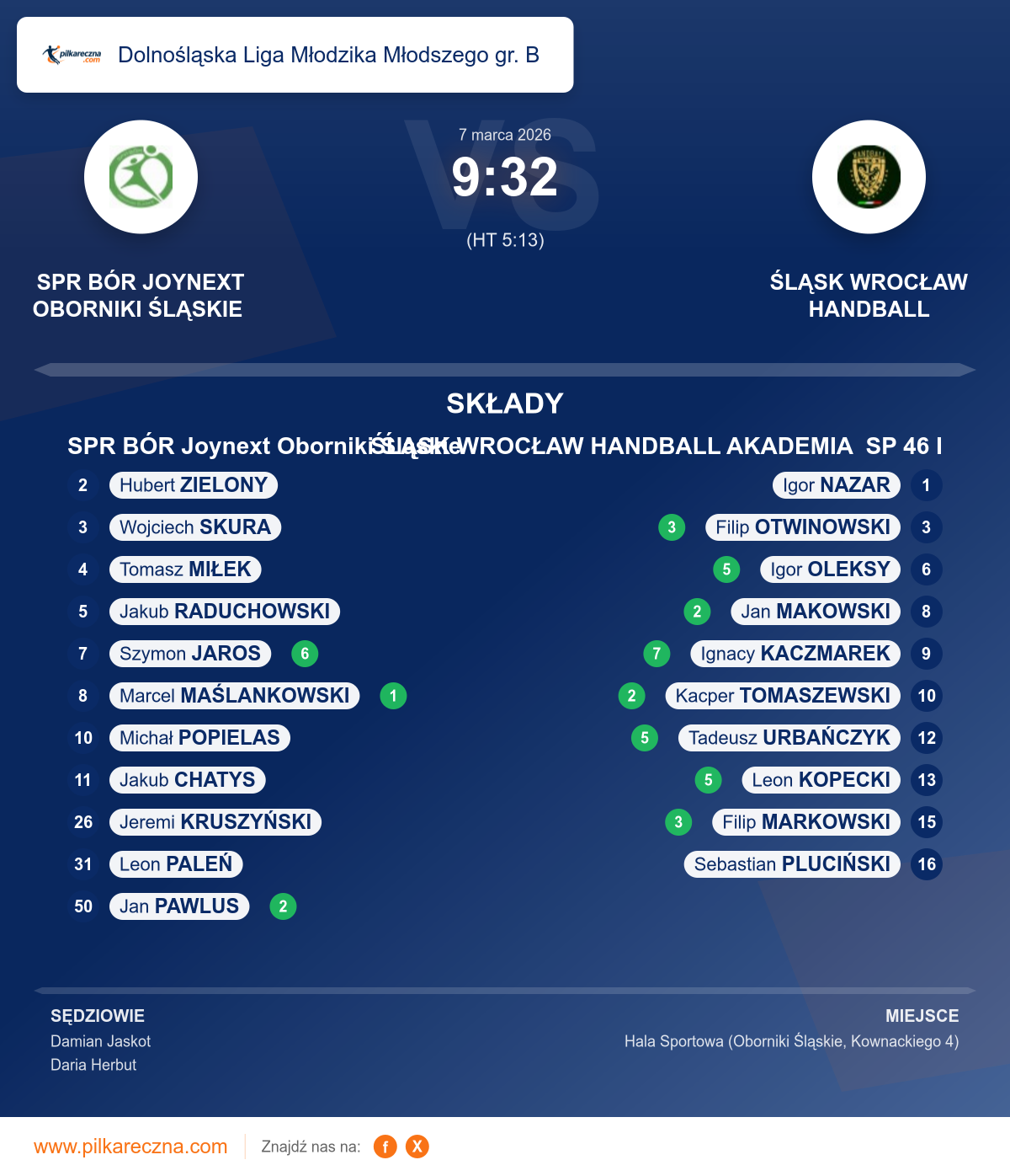 SPR BÓR Joynext Oborniki Śląskie — ŚLĄSK WROCŁAW HANDBALL AKADEMIA SP 46 I