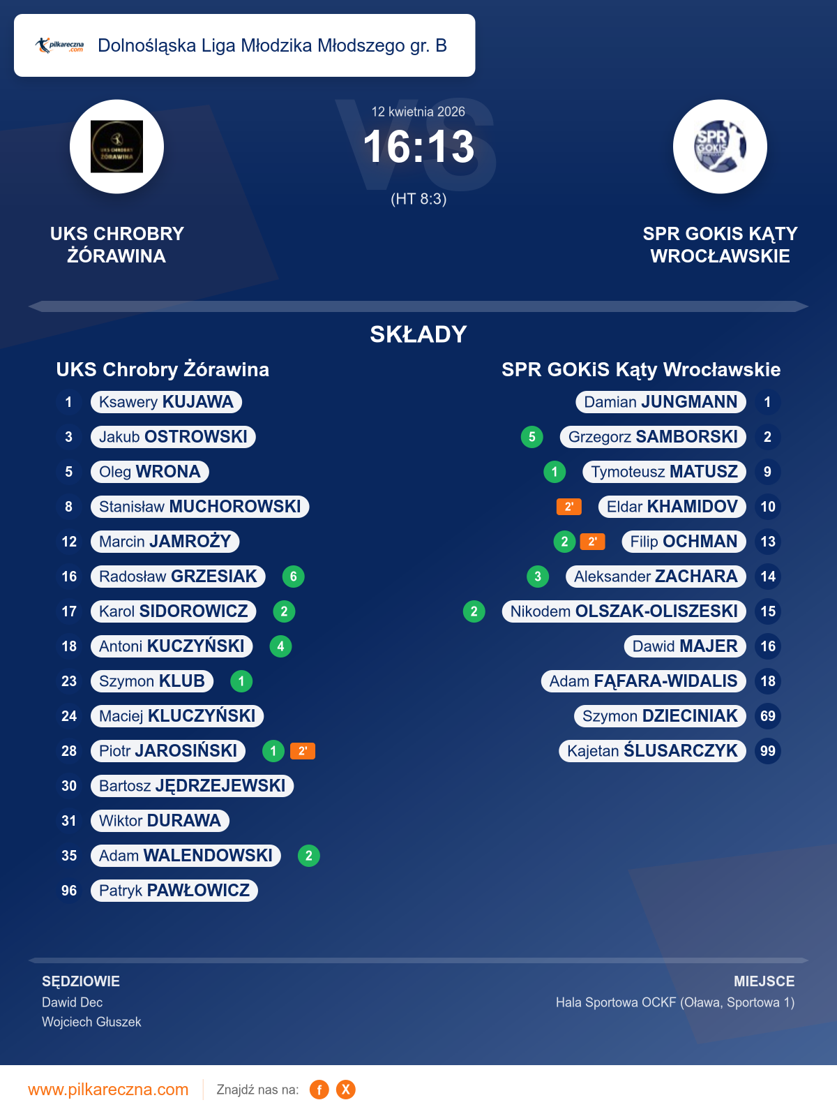 UKS Chrobry Żórawina 16–13 SPR GOKiS Kąty Wrocławskie