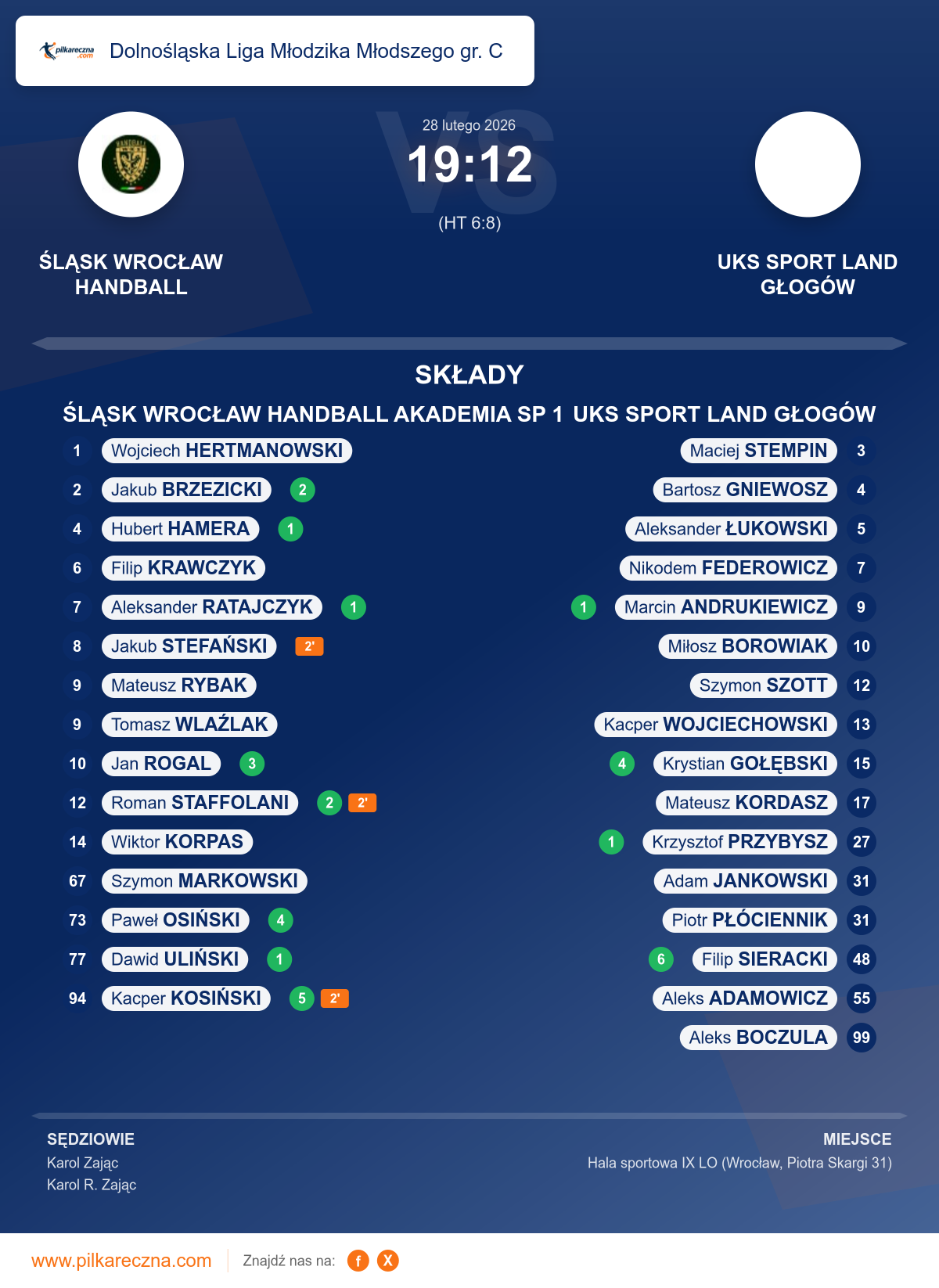 ŚLĄSK WROCŁAW HANDBALL AKADEMIA SP 1 19–12 UKS SPORT LAND GŁOGÓW