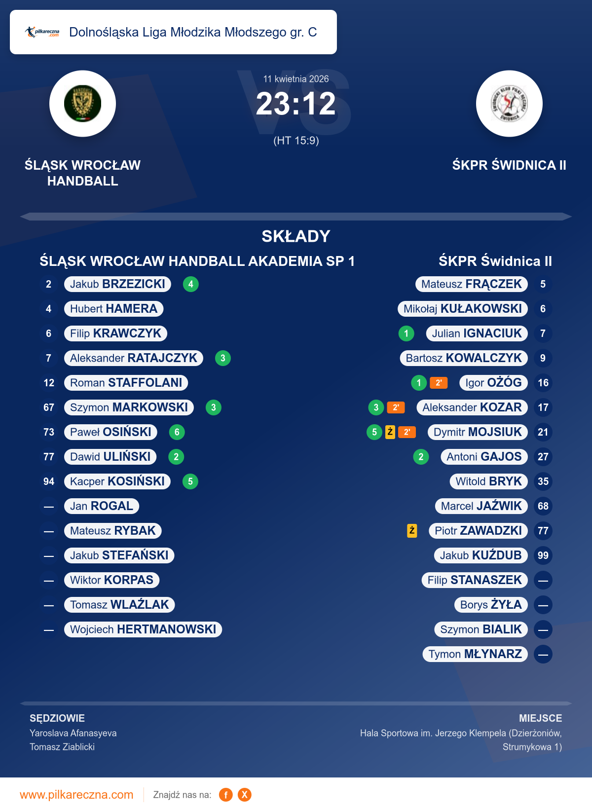 ŚLĄSK WROCŁAW HANDBALL AKADEMIA SP 1 23–12 ŚKPR Świdnica II