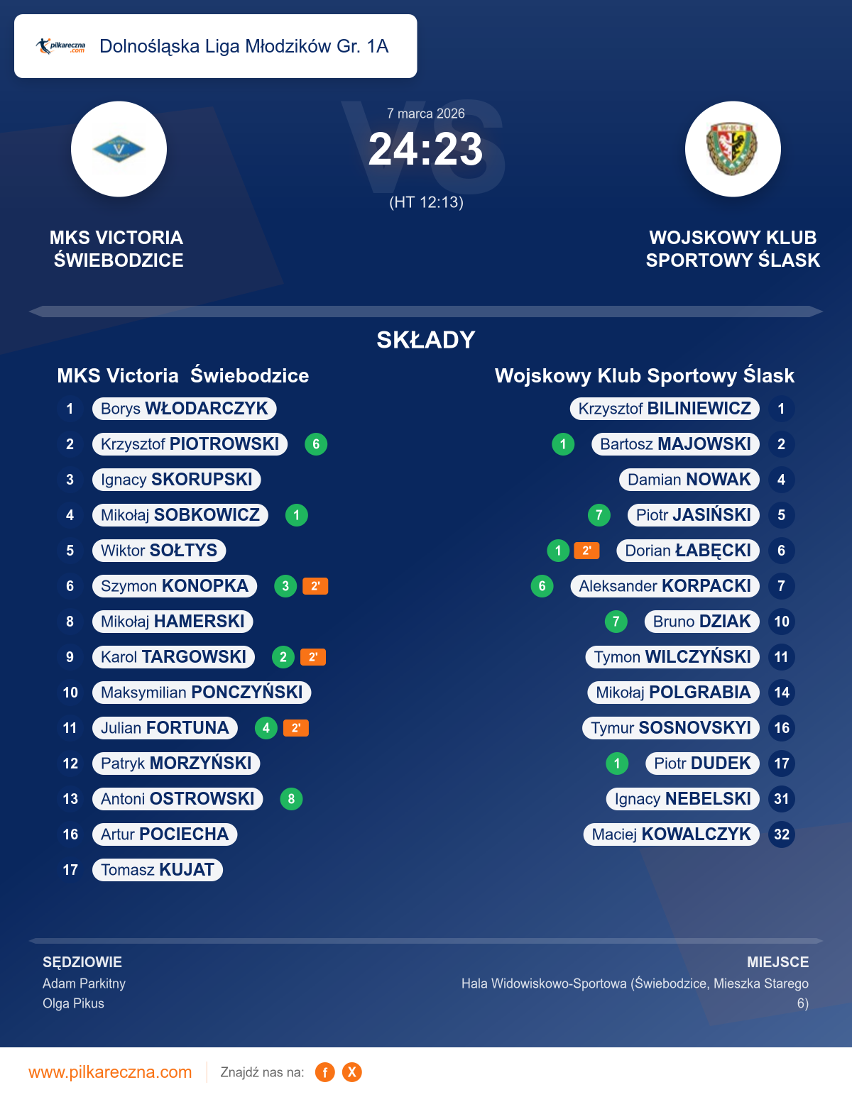 MKS Victoria Świebodzice 24–23 Wojskowy Klub Sportowy Ślask
