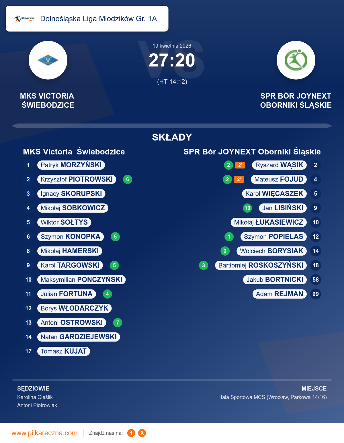 MKS Victoria Świebodzice 27–20 SPR Bór JOYNEXT Oborniki Śląskie