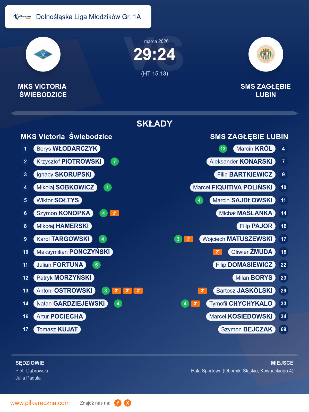 MKS Victoria Świebodzice 29–24 SMS ZAGŁĘBIE LUBIN