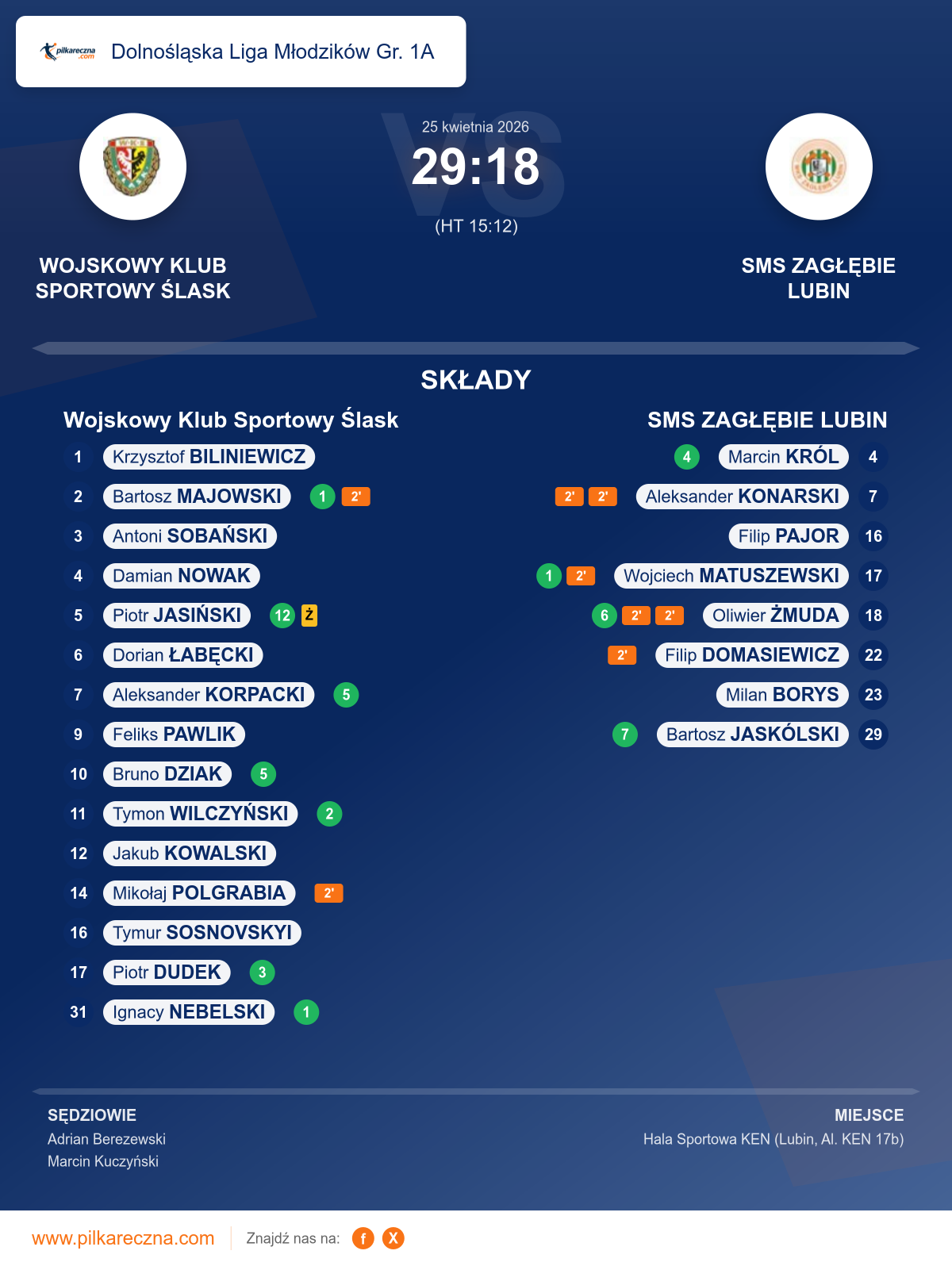Wojskowy Klub Sportowy Ślask 29–18 SMS ZAGŁĘBIE LUBIN