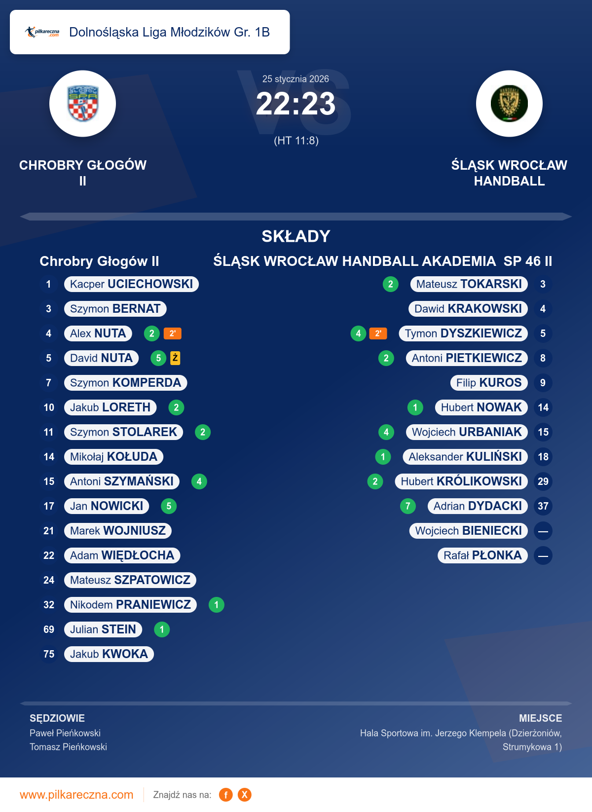 Chrobry Głogów II 22–23 ŚLĄSK WROCŁAW HANDBALL AKADEMIA SP 46 II
