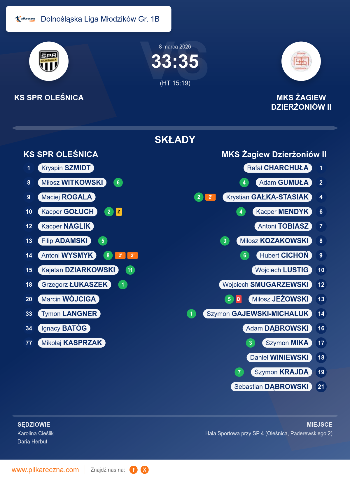 KS SPR OLEŚNICA 33–35 MKS Żagiew Dzierżoniów II