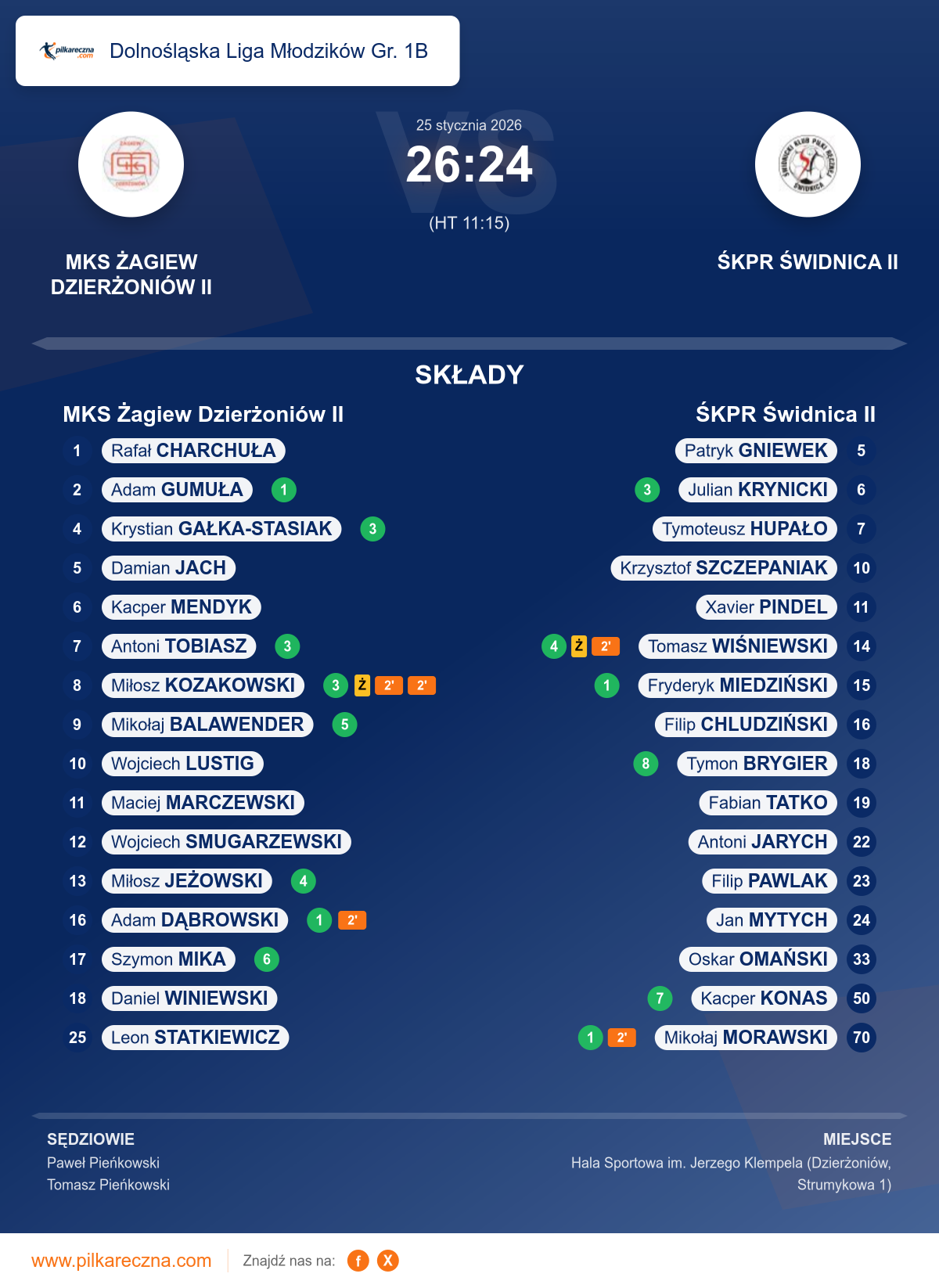 MKS Żagiew Dzierżoniów II 26–24 ŚKPR Świdnica II