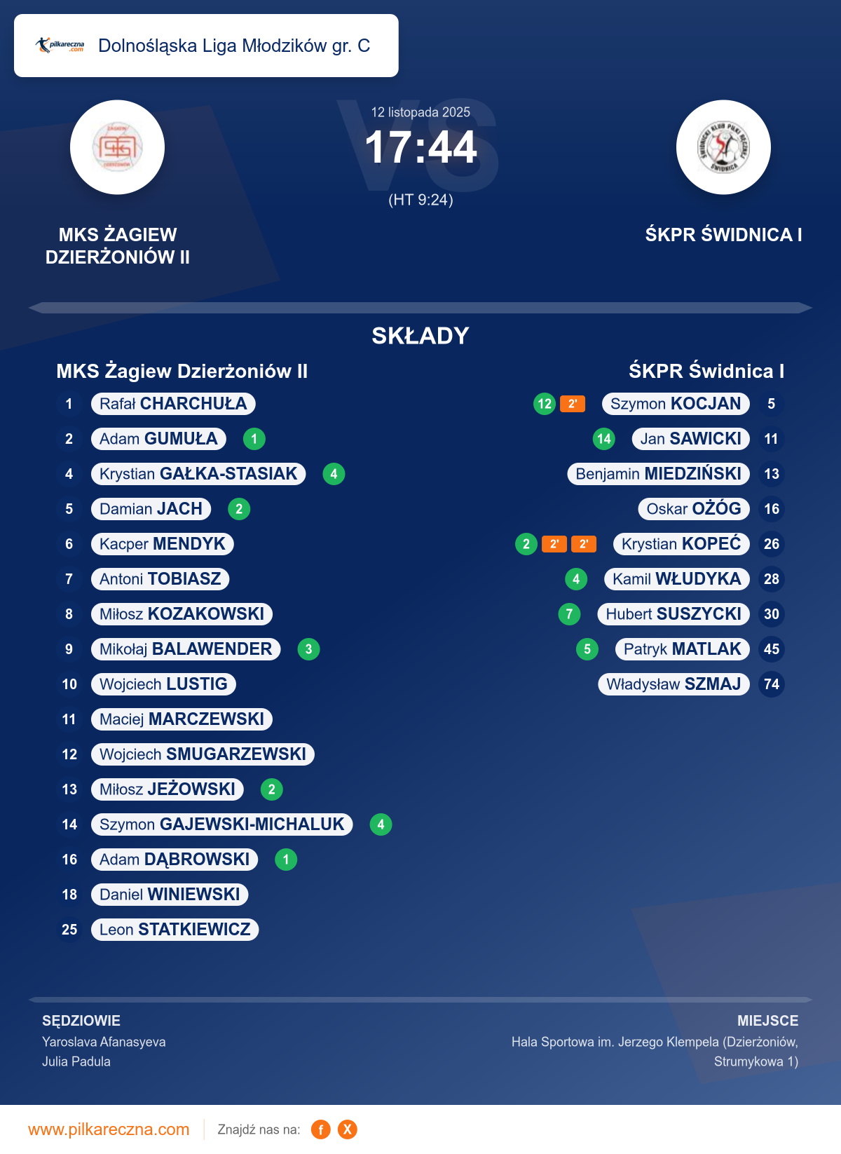 MKS Żagiew Dzierżoniów II 17–44 ŚKPR Świdnica I