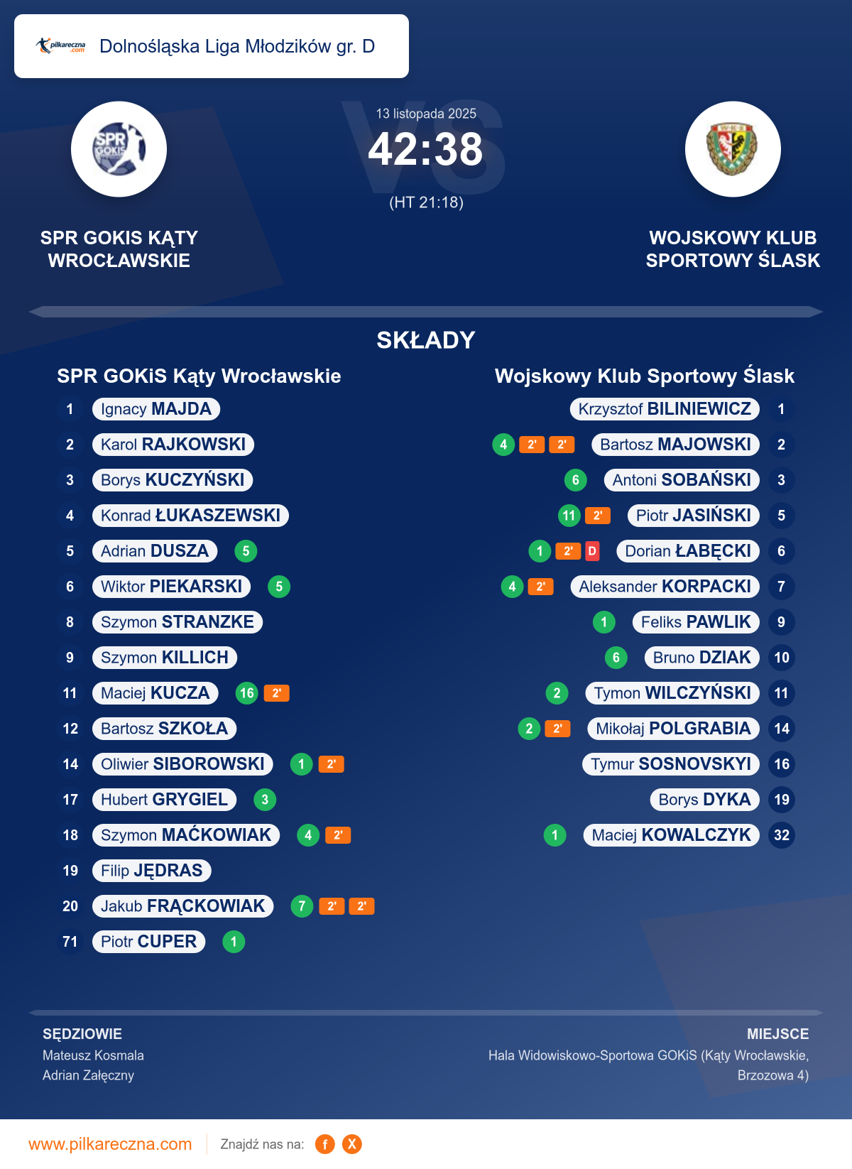SPR GOKiS Kąty Wrocławskie 42–38 Wojskowy Klub Sportowy Ślask