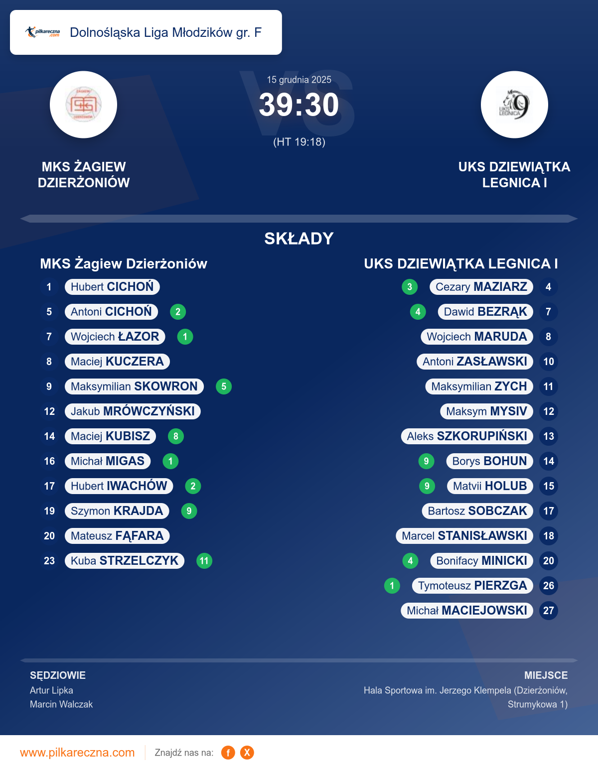 MKS Żagiew Dzierżoniów — UKS DZIEWIĄTKA LEGNICA I