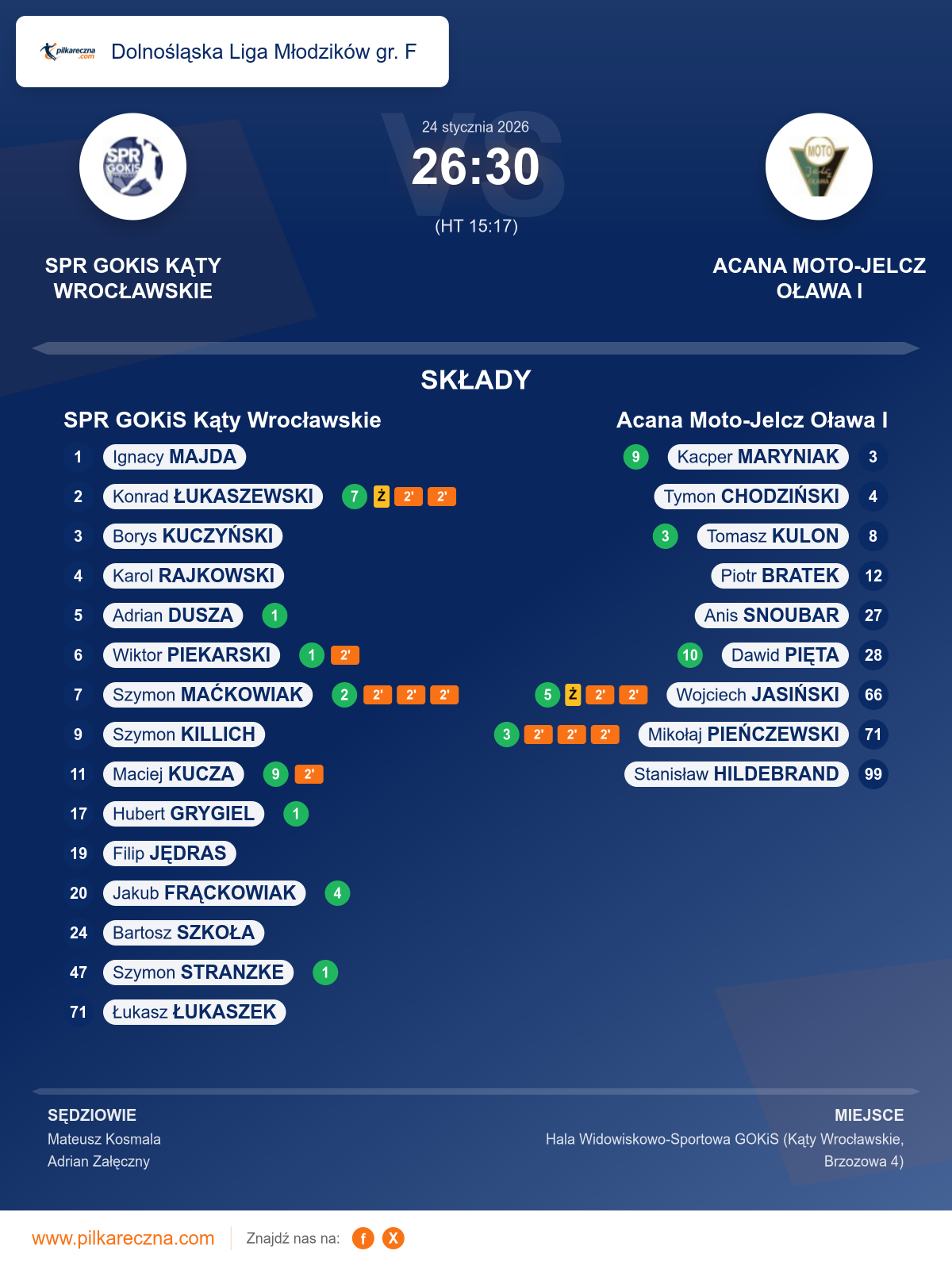 Sędziowali: Mateusz Kosmala, Adrian Załęczny