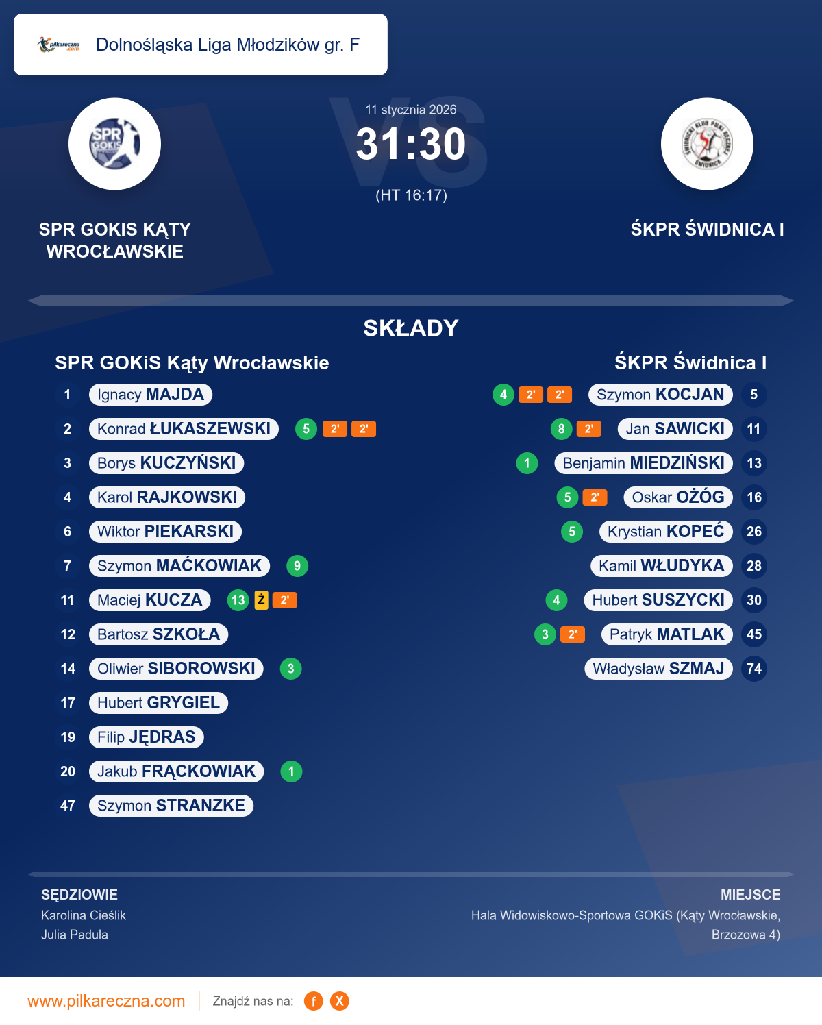 SPR GOKiS Kąty Wrocławskie 31–30 ŚKPR Świdnica I