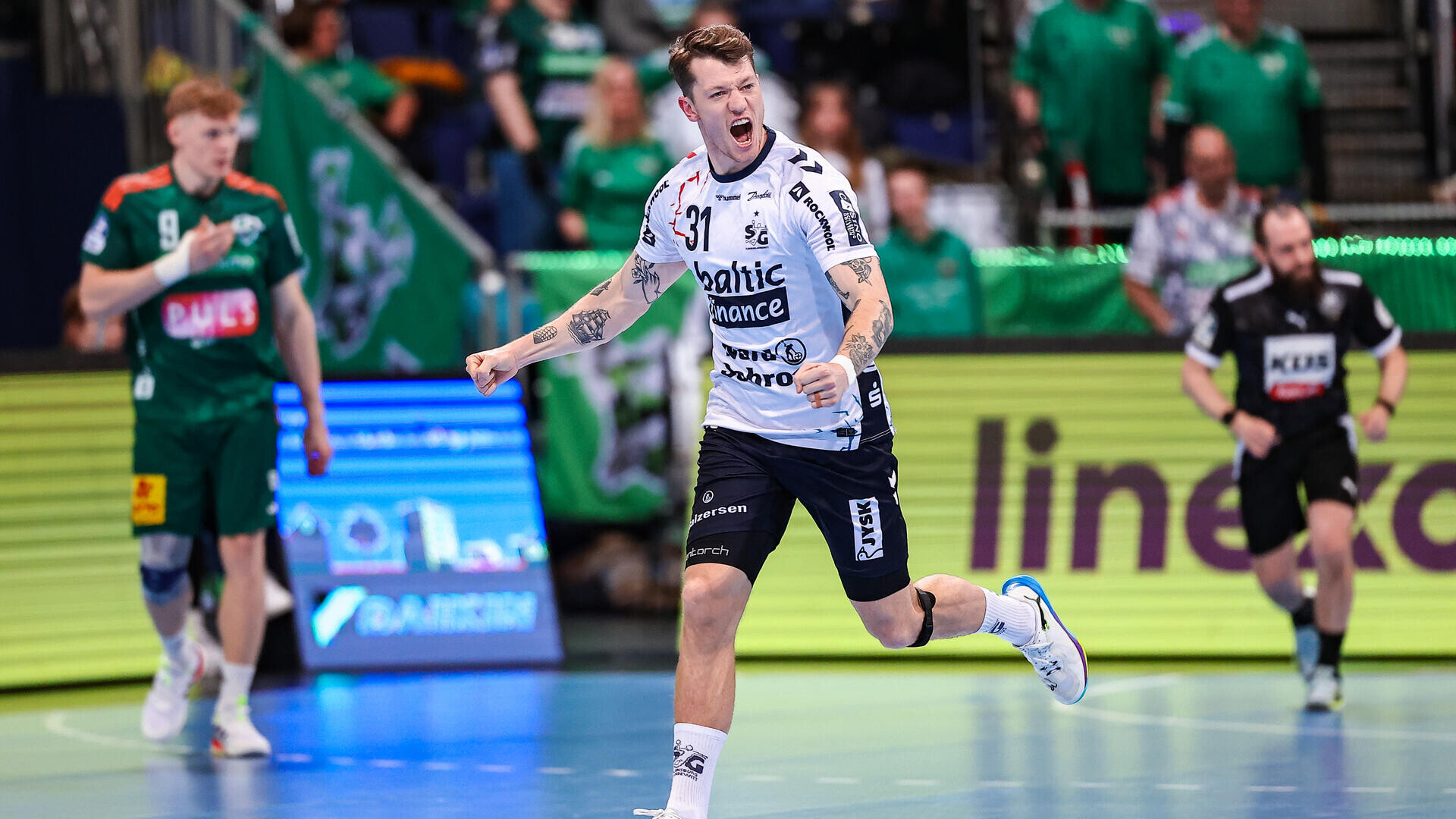 Kolejna udana akcja defensywna pozwoliła Lasse Møllerowi na zdobycie szóstej bramki w meczu – na niecałe cztery minuty przed końcem było 28:33, co praktycznie przesądziło o wyniku. Ostatecznie SG Flensburg-Handewitt wygrało 35:32, dowodząc, że w kluczowych momentach potrafi zachować spokój i kontrolę nad grą.