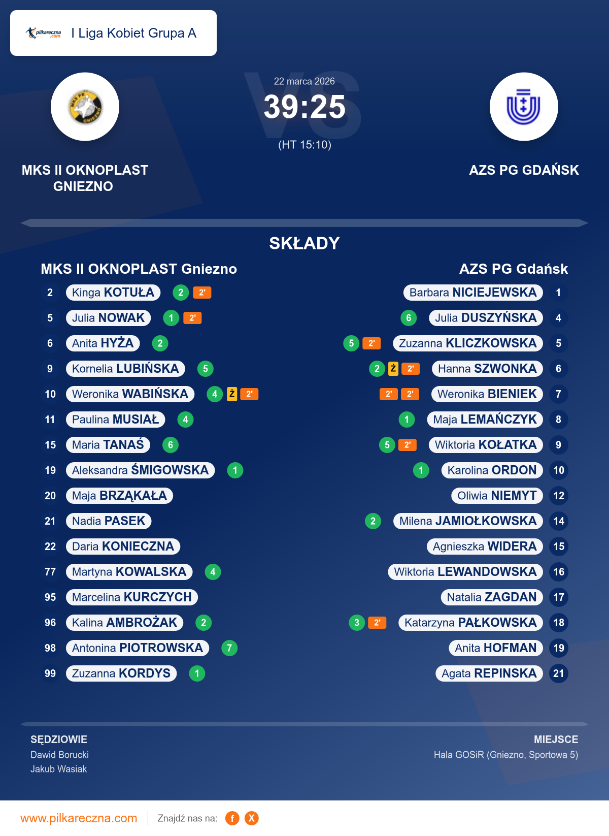 Sędziowali: Dawid Borucki, Jakub Wasiak