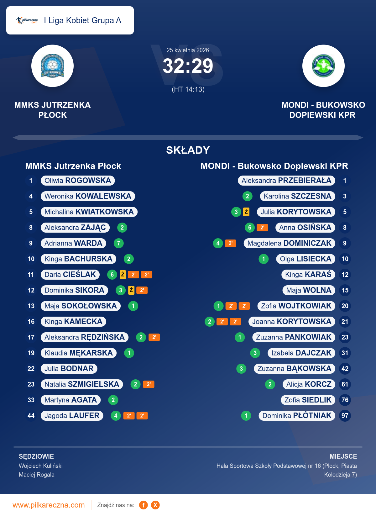 Wynik: 32–29 (HT 14–13)