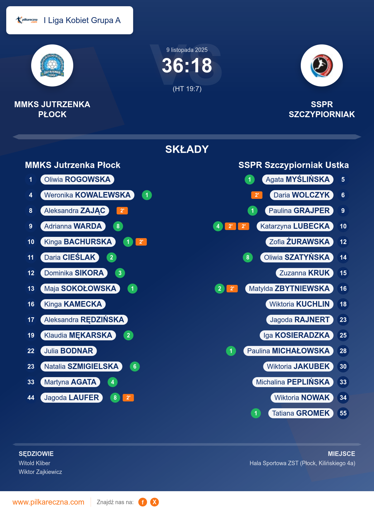 MMKS Jutrzenka Płock 36–18 SSPR Szczypiorniak Ustka