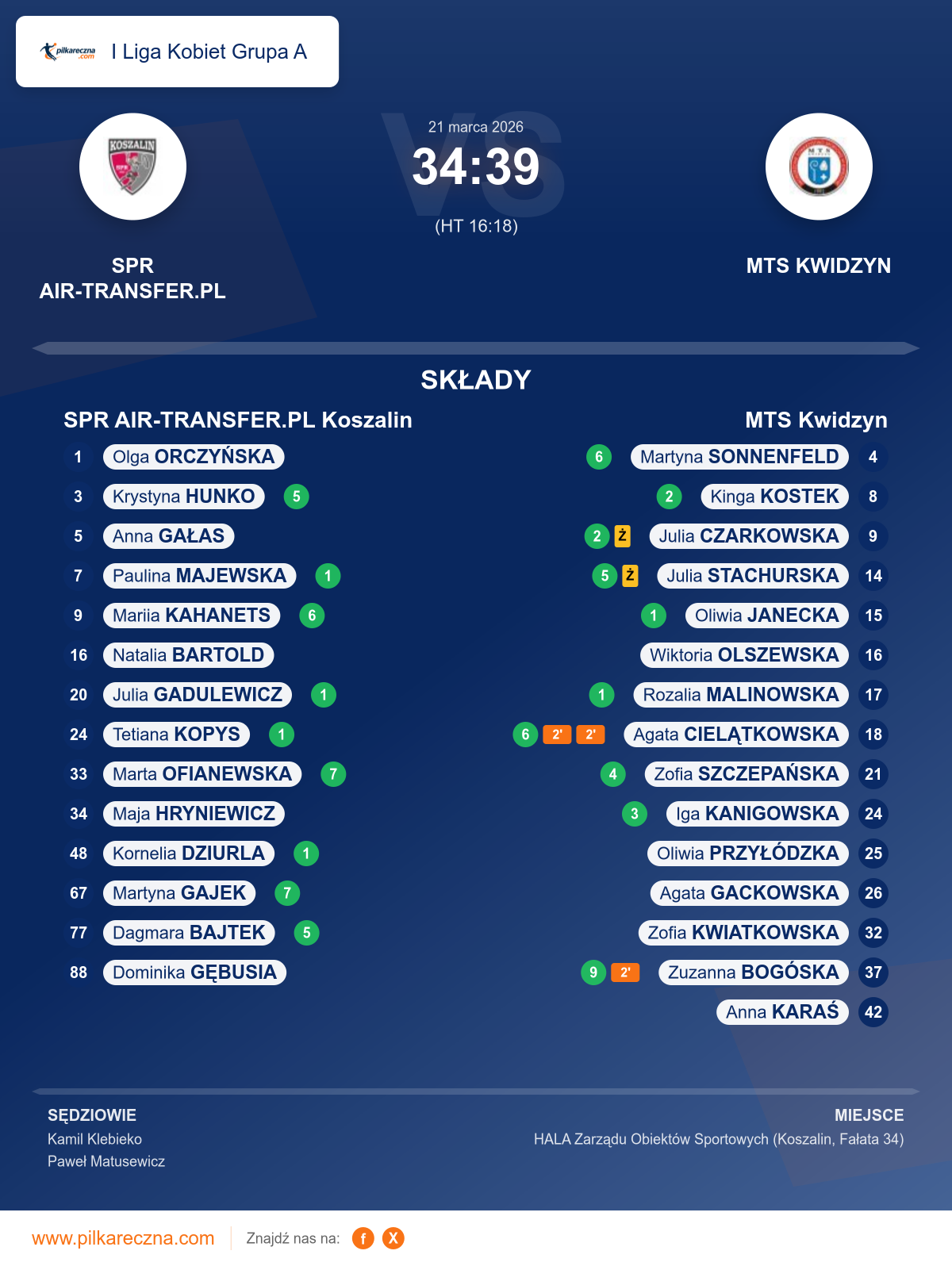 Sędziowali: Kamil Klebieko, Paweł Matusewicz