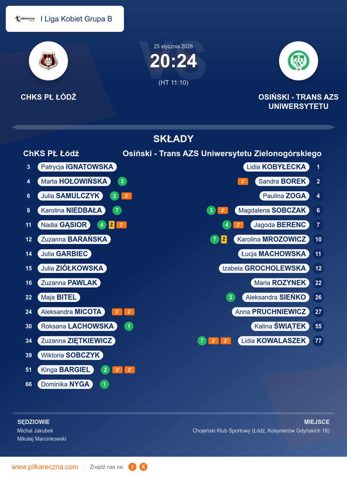 ChKS PŁ Łódź — Osiński - Trans AZS Uniwersytetu Zielonogórskiego